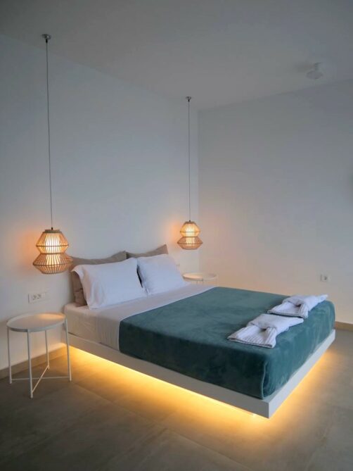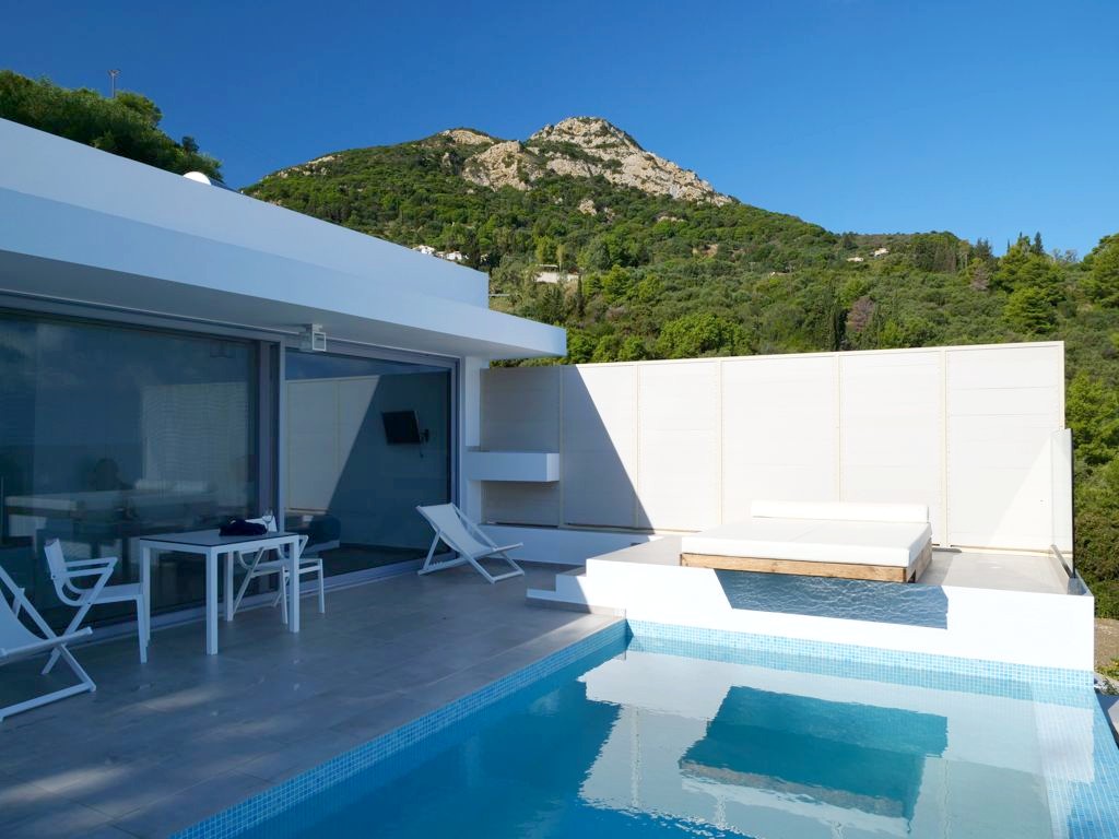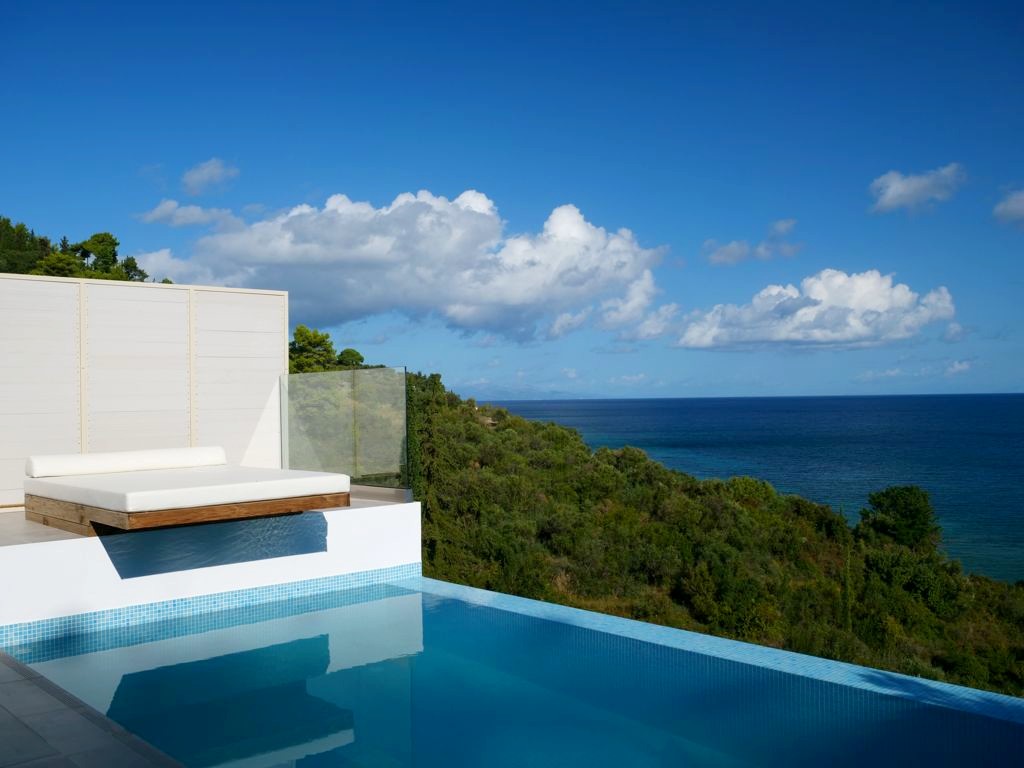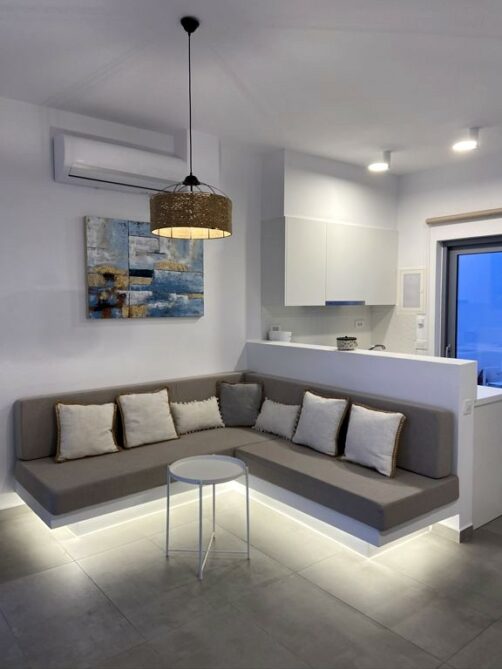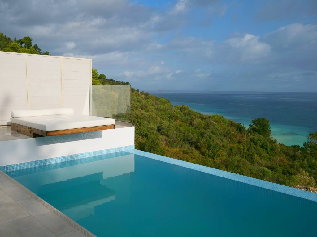 Ces suites modernes et luxueuses sont situées dans les hauteurs de la plage de Porto Kaminia (le resto-bar côté plage appartient aux mêmes propriétaires !).