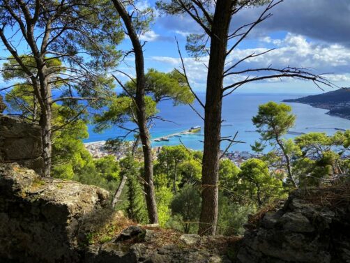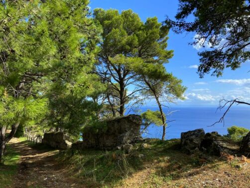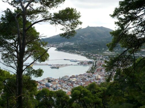 Nous avons été dans les hauteurs de la ville au point de vue de Bohali puis au château vénitien de Zakynthos, une citadelle dont il ne reste aujourd’hui plus grand chose, mais la balade à travers la forêt de pin qui occupe à présent le centre de la citadelle est agréable, avec quelques belles vues également sur la ville en contrebas.