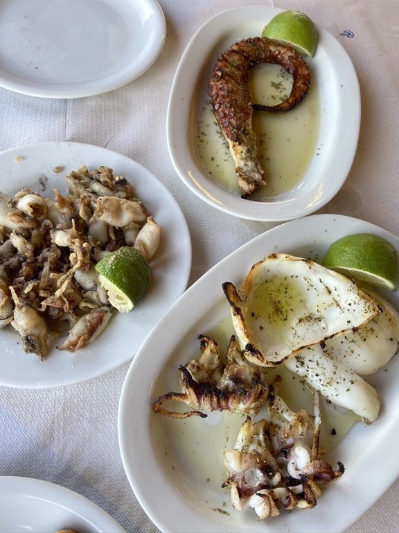 Si vous souhaitez manger avant d’arriver à Zakynthos, il y a pas mal de petits restos de poissons sympas (et très locaux) près du port. Nous avons mangé au restaurant Sou Mou Tavern, et c’était très bon !