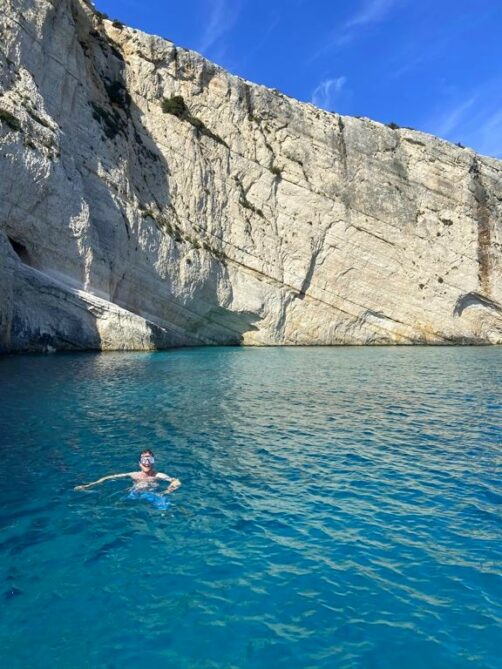 Si vous venez en haute saison et voulez vous y prendre à l’avance pour être sure d’avoir une place sur un bateau, vous pouvez réserver une excursion qui combine les Blue Caves et la Plage du Naufrage (voir ici) qui est aussi uniquement accessible en bateau.