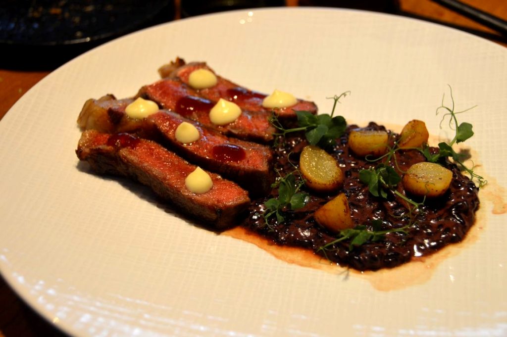 Et enfin, voici le « clou du spectacle », le plat principal: le boeuf Black Angus maturé, accompagné de yuzu, salsifi, et riz noir d’Italie. Je dois dire, je suis plutôt bonne cliente quant il s’agit de viande maturée… eh oui, j’assume mon côté carnivore ;)