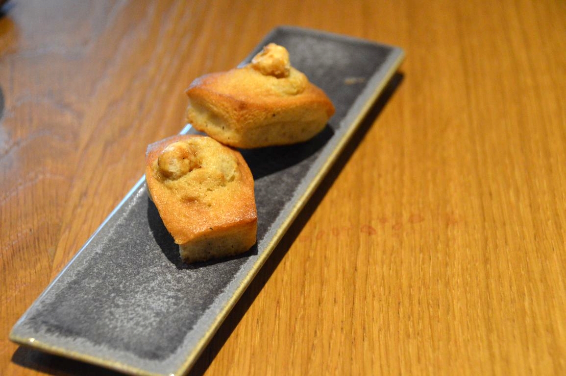 En dessert, nous avons fini sur une bonne note encore une fois, avec une préparation à base de chocolat, café et noisette, plutôt classique mais pas du tout lourd. Et enfin, pour accompagner notre thé/café, une petite madeleine.