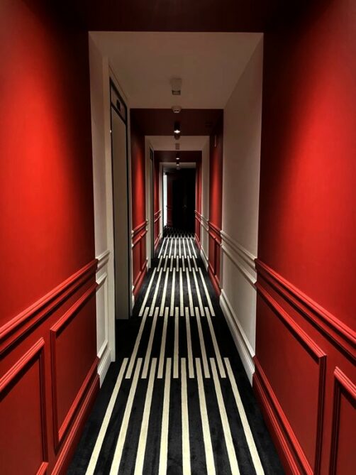 La décoration du Vincci Ponte de Ferro est d’ailleurs très réussie. Pour celle-ci, ils ont fait appel au studio Rosa Rosselló, qui a créé une déco très colorée (couloirs rouges, murs bleus, art contemporain…), tout en jeux de lumière et inspirée par le célèbre pont Dom Luís I, le plus célèbre de Porto, créé par un disciple de Gustave Eiffel, qui jouxte l’hôtel.