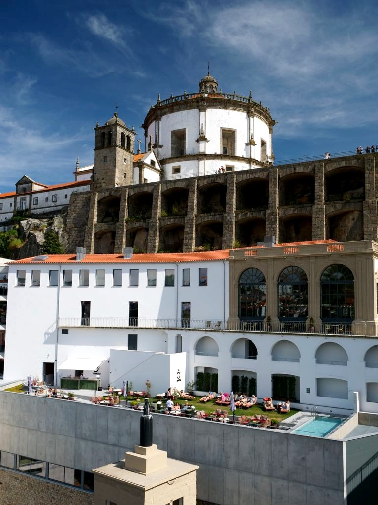 Mais la particularité de l’hôtel, c’est surtout sa structure originale, puisqu’il occupe plusieurs anciens bâtiments étalés sur une forte pente entre le Monastère Serra do Pilar (connu pour sa vue panoramique sur Porto) et les quais de Vila Nova de Gaia, le quartier des caves de porto.