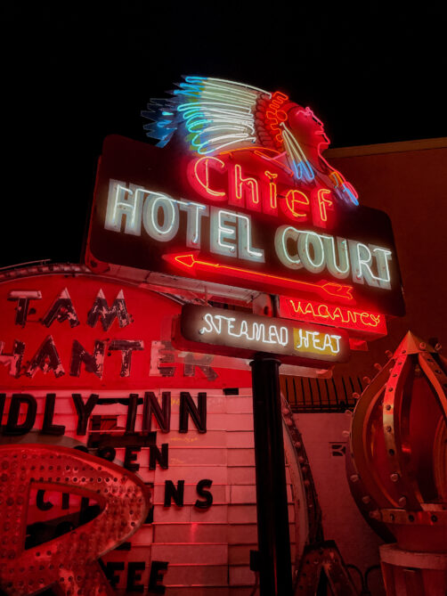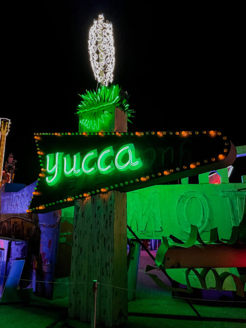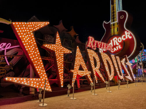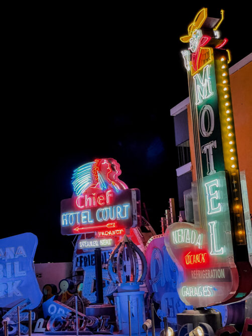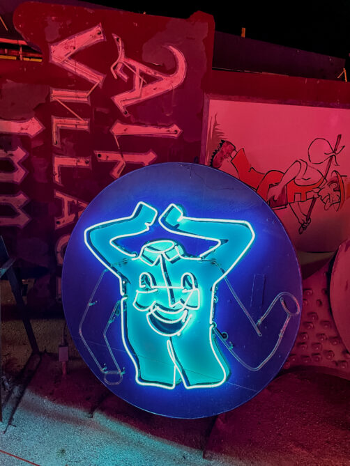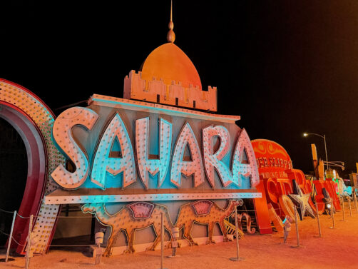 Les enseignes néon et panneaux vintage que l’on découvre lors de la visite du Neon Museum appartenaient auparavant à des casinos, des motels et autres commerces de Las Vegas. Le musée, qui est une association à but non lucratif, a commencé à les rassembler et à les restaurer en 1996, et aujourd’hui, chaque entrée contribue à la préservation de ce patrimoine de Las Vegas. Le musée a aussi restauré d’autres signes que vous pourrez admirer dans le quartier de Downtown Las Vegas, comme le cowboy du Hacienda Hotel installé au croisement de Fremont Street et Las Vegas Boulevard. Au total, ce sont aujourd’hui plus de 250 signes qui se trouvent dans la collection du Neon Museum, et ce chiffre ne fait qu’augmenter.