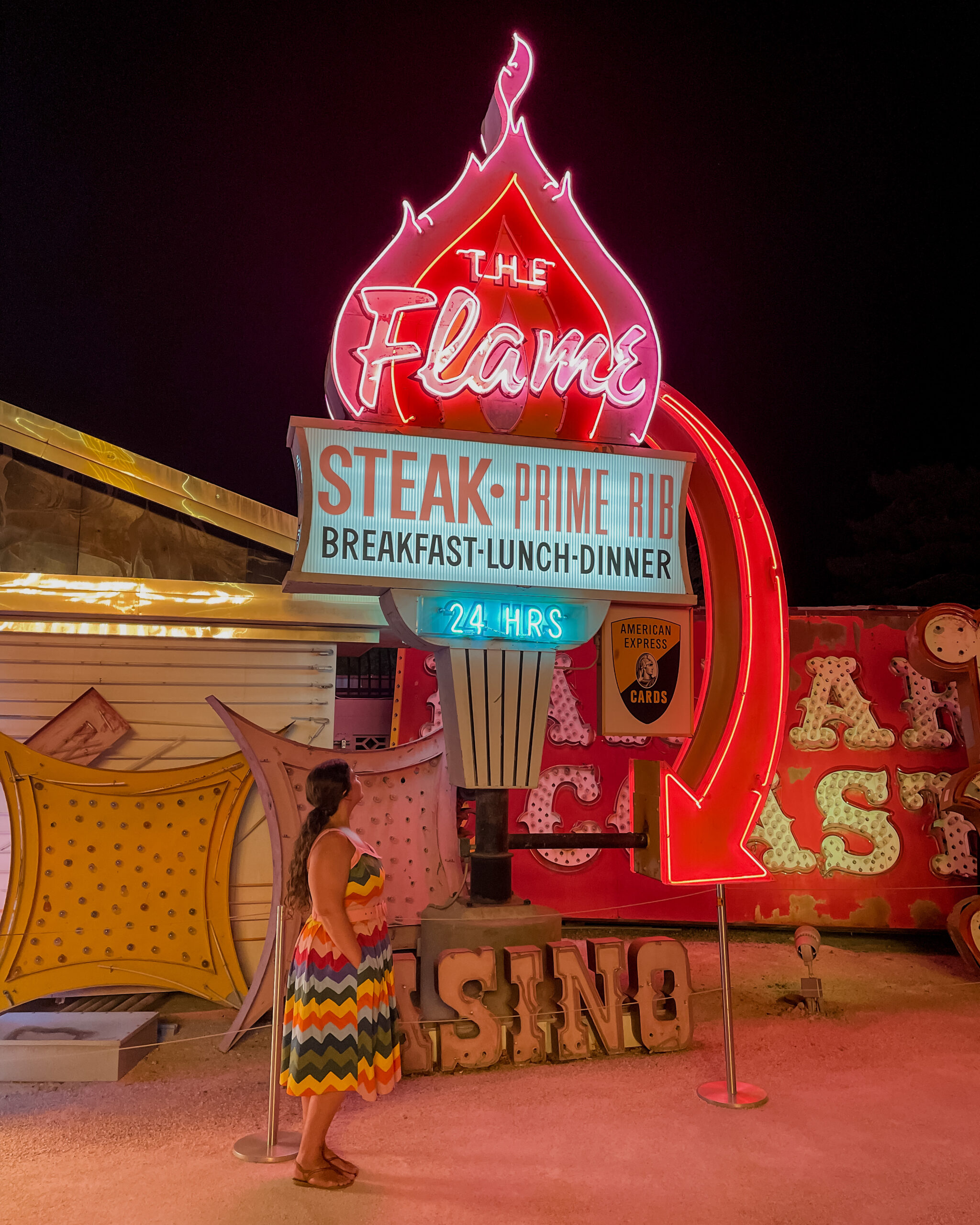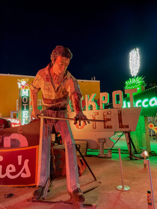 De jour, il est possible de visiter par soi-même le musée, mais de nuit les visites guidées sont obligatoires – et c’est tant mieux ! Nous aurions probablement manqué beaucoup de choses sans les explications de notre guide, native de Vegas, qui a partagé avec nous de nombreuses anecdotes historiques sur les néons lors de cette visite guidée nocturne d’environs une heure. Des anecdotes parfois drôles, parfois émouvantes et souvent incroyables !