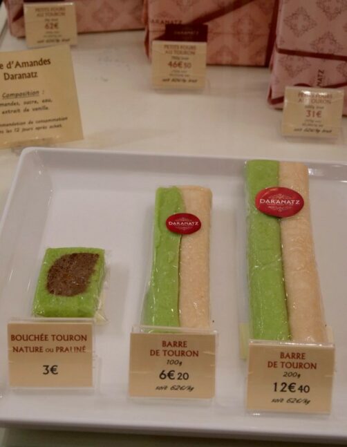 Les tourons sont plutôt une spécialité de Bayonne. On les trouve en gros rouleaux ou, pour une présentation plus élégante en coffret-cadeau, sous forme de petites mignardises colorées. Vous en trouverez notamment à la maison Daranatz et chez Cazenave.