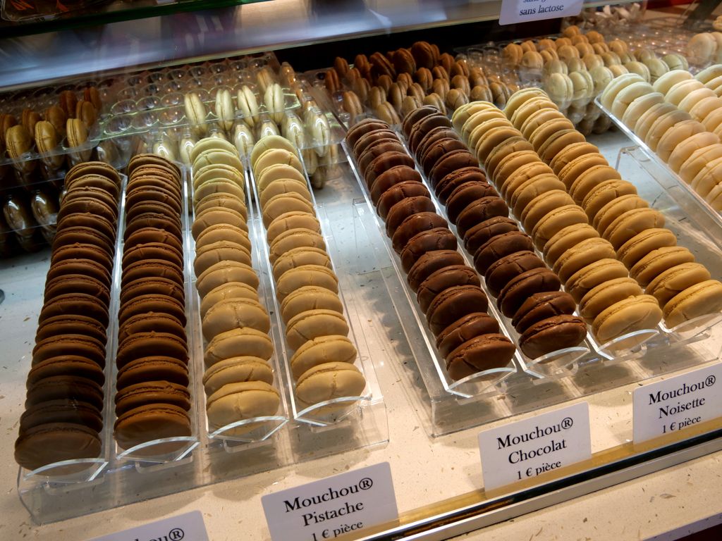 Les mouchous ou muxu, qui veulent dire « bisous » en basque, sont en quelque sorte un produit dérivé du macaron, créé « par erreur » par la Maison Pariès en 1948. Pour créer un muxu, deux macarons, encore plus riches en amande, sont collés ensemble. Les mouchous existent en plusieurs saveurs.