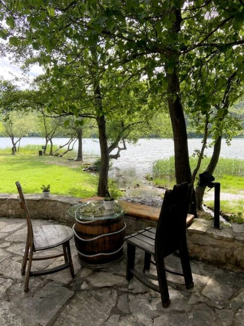 Le sentier se termine près de petits bâtiments où se trouve un mini musée, un moulin et une petite buvette, parfait pour boire un verre entouré par l’eau avant d’entamer la remontée (ou en attendant la navette si vous avez choisi ce mode de transport).