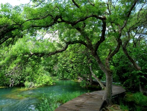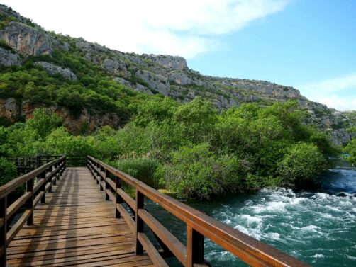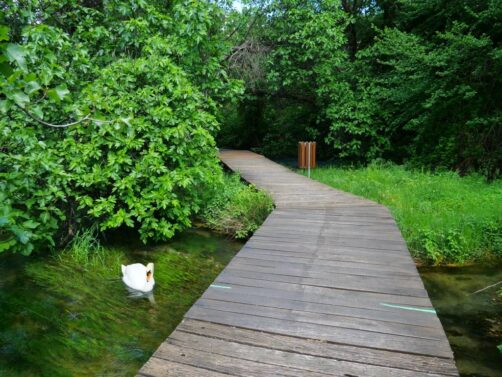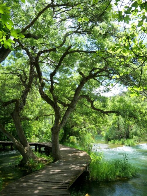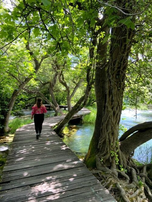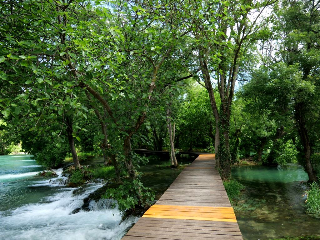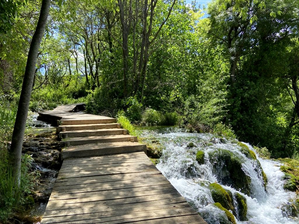 Nous avons ensuite fait le petit sentier de découverte d’environs 1km qui permet de découvrir les chutes de Roski Slap. C’est un peu moins impressionnant, mais la balade est très reposante. Au milieu, on traverse l’eau via un ponton en bois. Une jolie manière de terminer notre journée, avant de rentrer à Sibenik !