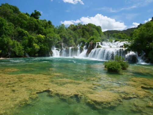 De nombreux touristes visitant le Parc National de Krka s’arrêtent à la visite des cascades de Skradinski Buk. Si vous n’avez qu’une demi-journée pour visiter le parc, c’est en effet la zone du parc à ne pas rater.
