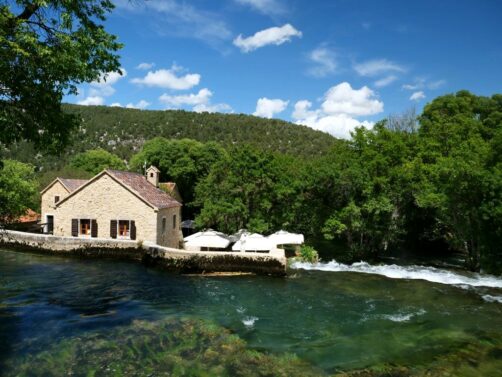 Si vous préférez tout de même dormir dans le parc, il y a un hôtel juste à côté de l’entrée de Lozarac (Hotel Vrata Krke), quelques options à Skradin (dont l’Hotel Skradinski Buk), et même un glamping plutôt original près des chutes de Roski Slap (Krka Fairytale village – vous avez envie de dormir dans une maison champignon ? C’est l’endroit qu’il vous faut !).