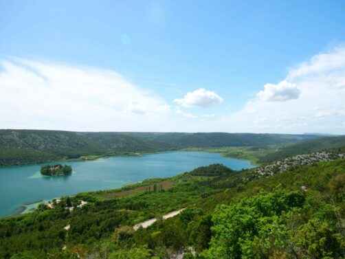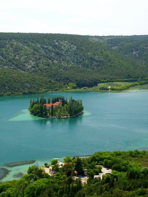 ous nous sommes d’abord arrêtés près de l’île de Visovac, sur laquelle se trouve un monastère franciscain du 15ème siècle. Pas de bateau pour traverser ce jour-là, mais de sublimes vue sur l’île et la rivière Krka depuis le point de vue situé près du Monument au Roi Petar Svacic.