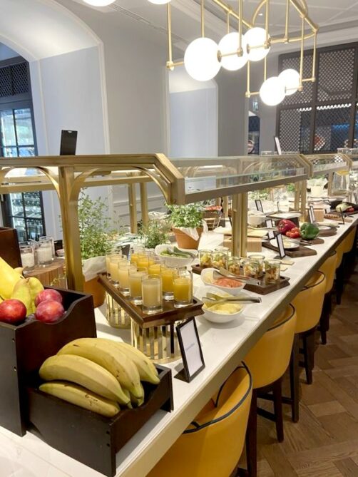 Outre le fait qu’il y en avait bien sûr pour tous les goûts (bulles, viennoiseries, omelettes, pancakes, fromages, charcuteries, fruits à gogo, tout pour le petit-déjeuner anglais et continental…), j’ai apprécié le fait de pouvoir s’installer sur leur terrasse ombragée pour déguster notre copieux petit-déjeuner dans un cadre très cosy (si vous avez accès au Lounge, vous pouvez également le prendre là, mais il y a vraiment plus de choix au restaurant !).