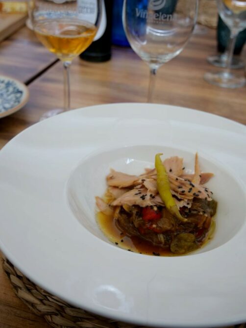Après une visite de leurs infrastructures, nous avons fait une belle dégustation de vins du domaine avec un petit food & wine pairing puisque chaque vin dégusté était accompagné de petites préparations maison très originales. Ce vignoble familial produit une grande variété de vins, et en particulier d’excellents vins liquoreux.