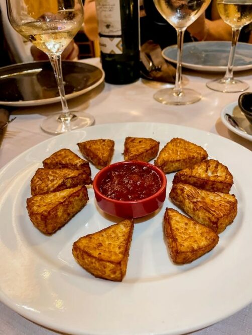 - le fromage de chèvre local, servi frit avec de la confiture de tomate, ou encore plus traditionnel, avec de la sauce tomate