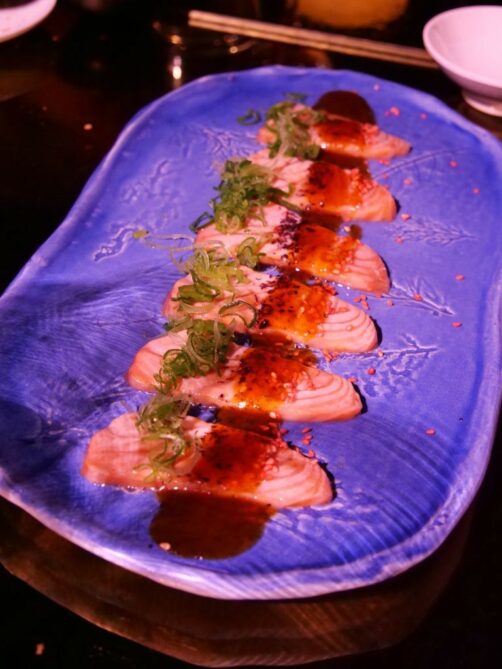 - Odiseo : le nouveau casino ultra moderne de Murcia (on se croirait à Vegas !), Odiseo, possède plusieurs espaces pour manger et boire, dont un restaurant étoilé et un bar en terrasse très cosy. On a passé la soirée à leur expérience « Fugu » au Bar Rojo, un repas-spectacle « nikkei » très éclectique et plutôt drôle. Le repas d’inspiration japonaise accompagne le spectacle en plusieurs services. Les sushis étaient très bons. Si vous cherchez une expérience originale à Murcia, c’est pour vous !
