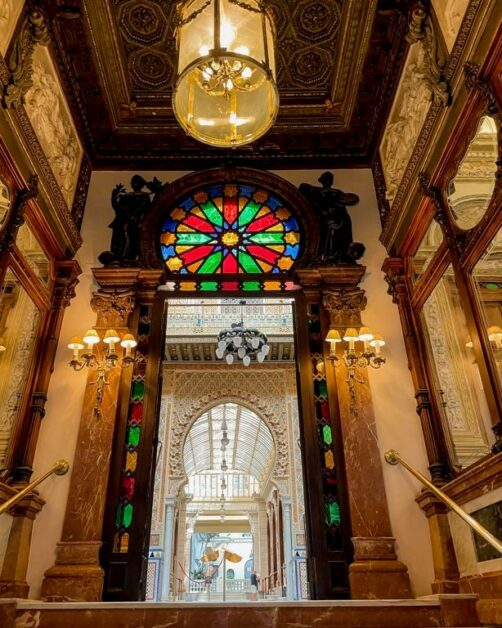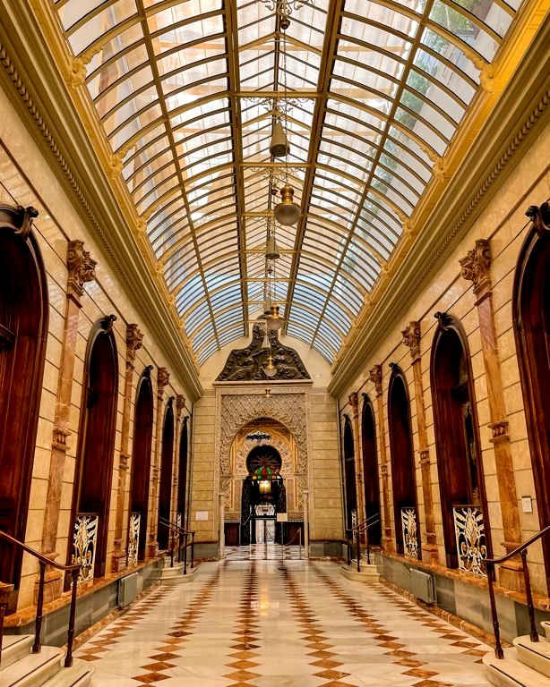 Le Real Casino de Murcia est l’autre endroit immanquable pour les amateurs d’architecture, et pour moi le plus beau bâtiment de Murcie. La dénomination de Casino est trompeuse car il s’agit d’un club social privé, dont le rez-de-chaussée peut se visiter (accès payant). Son architecture éclectique mélange les influences modernistes, néo-classiques, arabes et néo-baroques. Son sublime patio mène à différentes salles, toutes richement décorées. L’audiotour est court mais intéressant.