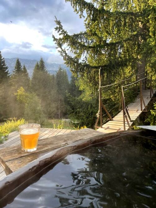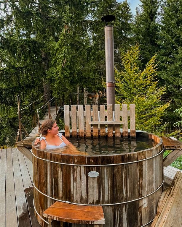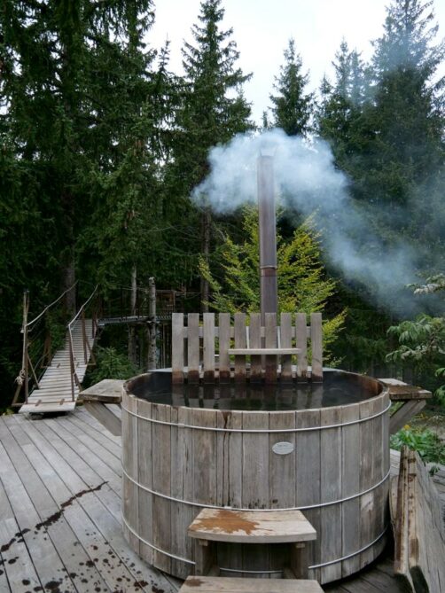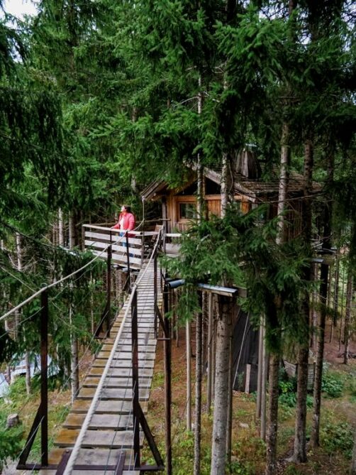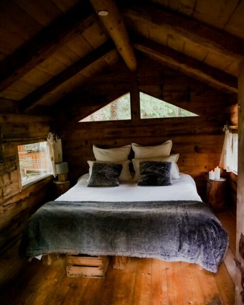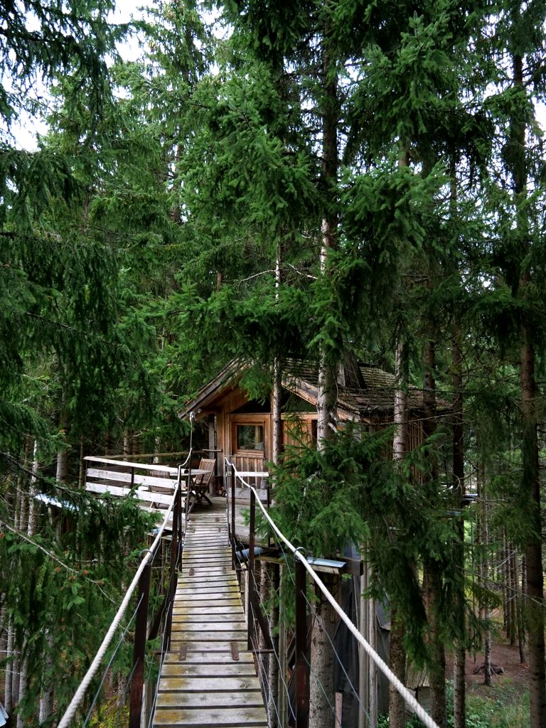 Perdu au milieu de la forêt (littéralement, car on vous y emmène en 4×4 !), cet hébergement est parfait pour un séjour coupé du monde, puisqu’il n’y a pas de wifi. On y trouve un gîte, deux cabanes dans les arbres, et un très agréable bain norvégien, qui avait été mis à température juste pour notre arrivée !