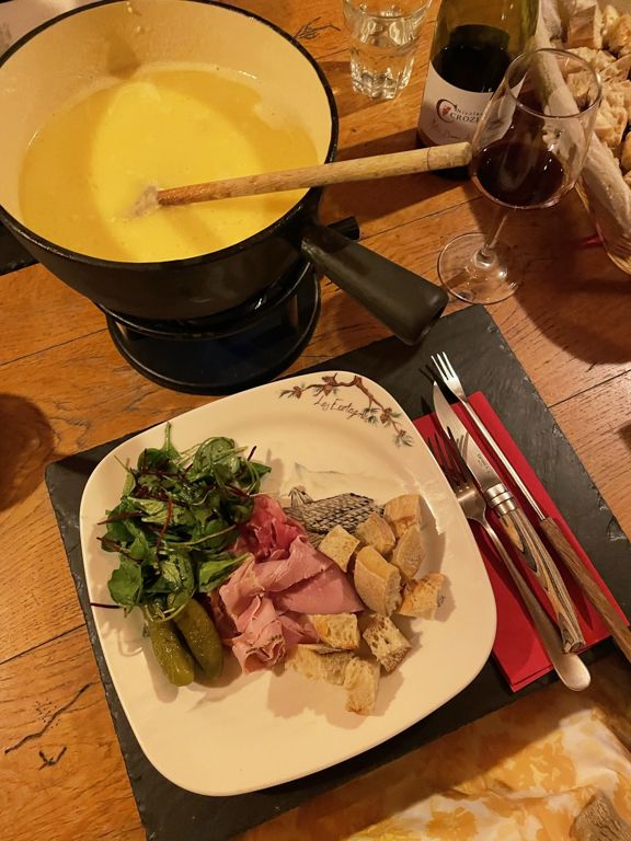 Le soir, le sympathique propriétaire vous propose un repas aux petits soins avec une excellente fondue suisse (une des meilleures que j’ai mangé) avant de finir la soirée à papoter au coin du feu.