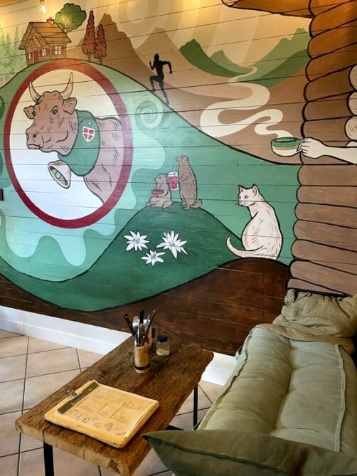Après leur avoir dit bonjour, nous avons mangé au Shed Café, une nouvelle adresse avec une carte réduite axée sur les produits locaux et les croque-monsieur de compétition ! Ils ont également une petite terrasse avec une jolie vue sur les montagnes des Aravis. Une excellente adresse pour manger sur le pouce.