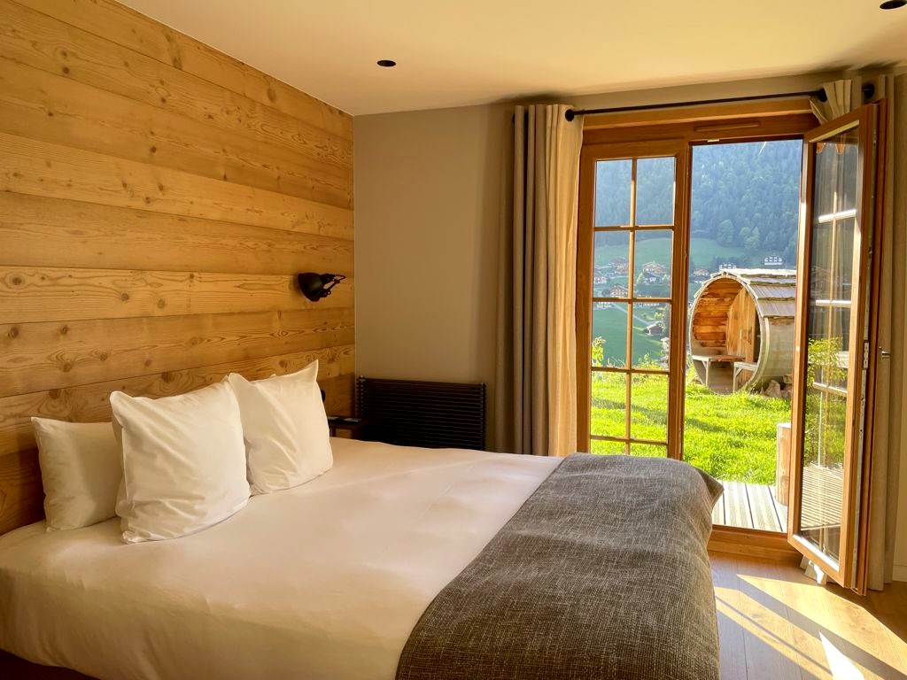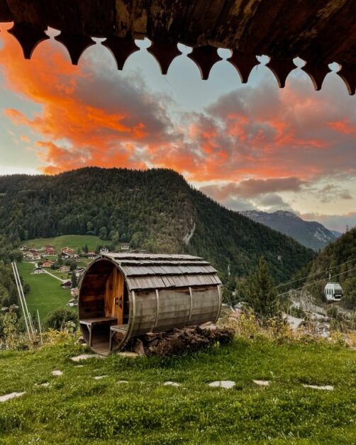 Nous avons séjourné à La Clusaz à l’Hôtel La Ferme, un très confortable hôtel situé dans les hauteurs du village, juste à côté des remontées mécaniques. Ma chambre, très spacieuse et moderne tout en gardant un agréable côté chalet, avait un accès direct au sauna panoramique avec vue sur le village. L’endroit parfait après une journée à la montagne !