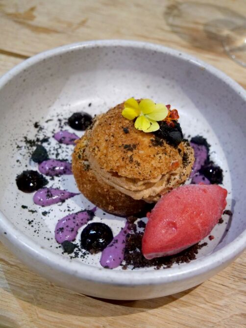 Les plats sont tout aussi beaux que bons, et ils ont également une belle carte de cocktails. Mention spéciale pour le gravlax de truite de Savoie et pour leur original « Paris Annecy », variante locale du Paris Brest associant le praliné à de la myrtille.