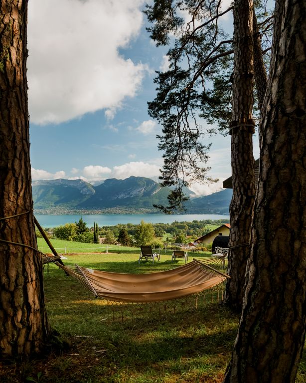 Nous avons passé une nuit au lac d’Annecy à la chambre d’hôtes Les Ô d’Annecy, située dans les hauteurs du lac à Saint-Jorioz et entourée par un grand espace vert (où on peut notamment prendre l’apéro perché dans les arbres !).