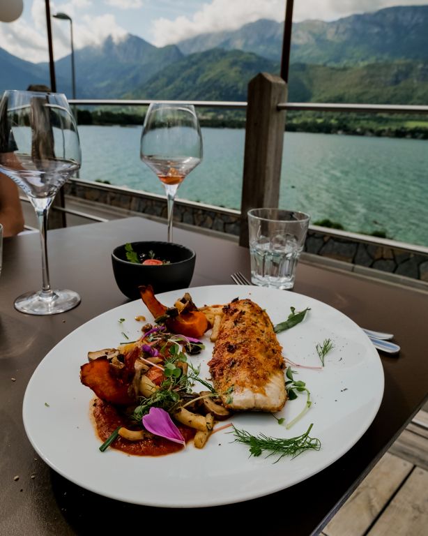 Les bords du lac d’Annecy sont parsemés d’excellents restaurants où vous pourrez profiter de repas avec vue sur le lac. Voici deux excellentes adresses testées et approuvées, et quasiment les pieds dans l’eau.