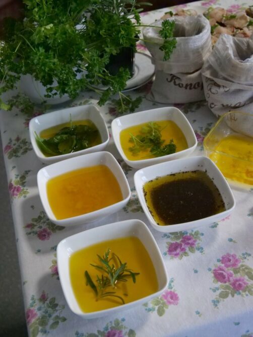On peut aussi y participer à différentes activités : en ce qui nous concerne, nous y avons fait un workshop autour des herbes qui a abouti à la création de notre propre huile aux plantes !