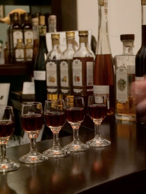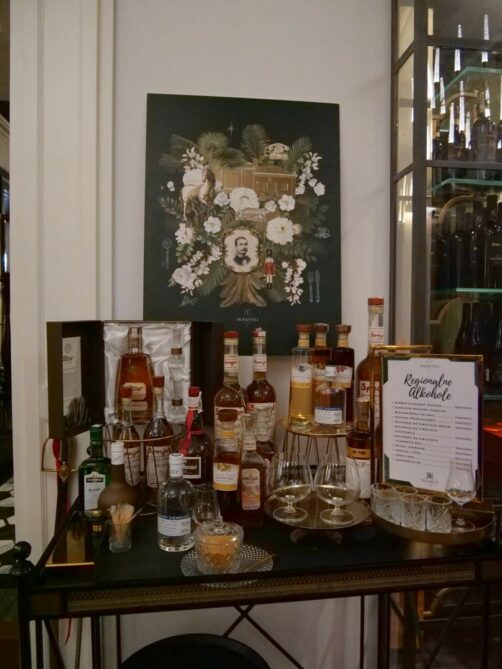 L’enthousiaste patron nous a fait goûter la quasi entièreté de ses alcools et liqueurs. Pour l’instant, ils ne produisent pas (encore) leur propre alcool, mais ils font des assemblages avec des fruits et des herbes pour produire des liqueurs et du gin. La « Knalevka » est la liqueur la plus populaire, c’est un alcool à base de cerise amère, que l’on consommait auparavant pour ses vertus thérapeutiques.