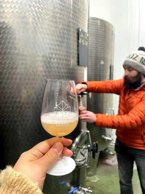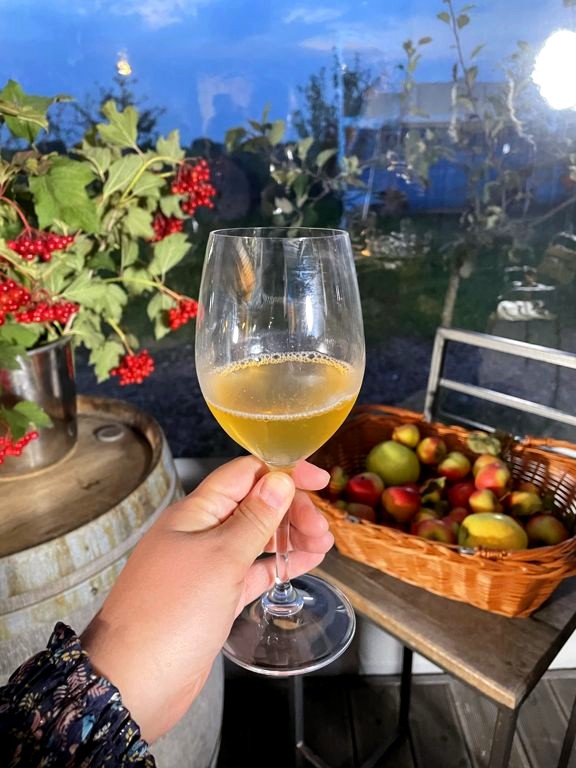 Ils produisent chaque année 12-15 cidres, qui varient en fonction des récoltes. Ils ont aussi un vermouth de cidre à base des herbes de leur ferme, et quelques vignes qui leur permettent notamment de produire un cidre rouge, dans lequel ils ajouent 5% de raisin pour la fermentation. Une chose est sure : je ne m’attendais pas à déguster de tels cidres en Pologne !