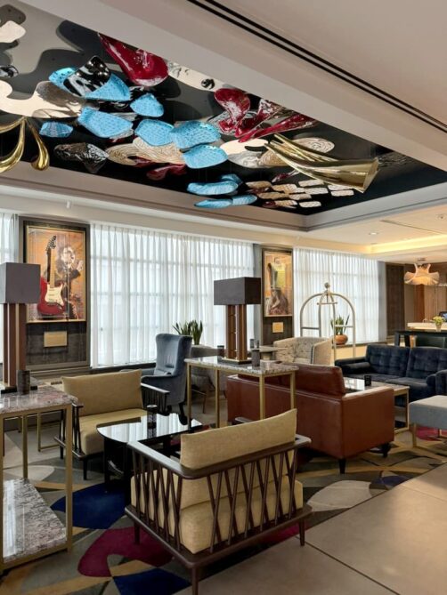 Ca devient donc, je pense, un encore meilleur bon plan pour loger à un bon emplacement dans le centre (c’est le plus proche de Temple Bar de cette liste) tout en étant au calme (très bien insonorisé et pas dans le coin le plus passant). Bon malheureusement, je pense que les instruments et costumes de stars exposés ne sont eux pas restés au niveau du lobby de l’hôtel, mais le bar de l’hôtel propose toujours des concerts live.