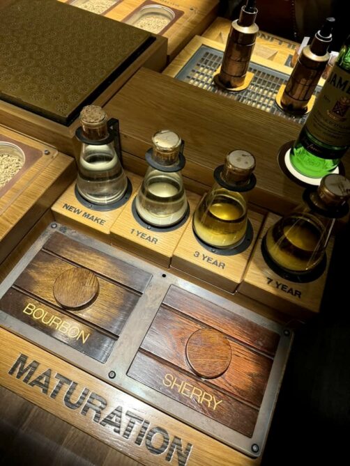 Pour une si grande marque, j’ai quand même trouvé la visite fort simple, mais c’est une bonne introduction si vous n’avez jamais fait de visite de distillerie de whiskey. L’expérience Johnnie Walker à Edimbourg est pour moi bien plus originale, en comparaison. Ce qui est sympa, c’est que la visite commence par un cocktail au whiskey. La visite passe ensuite par différents espaces où vous apprendrez (de manière interactive) comment est produit le whiskey, et comment on le déguste. On termine par la dégustation de trois types de whiskey, dont un qui n’est vendu qu’ici.