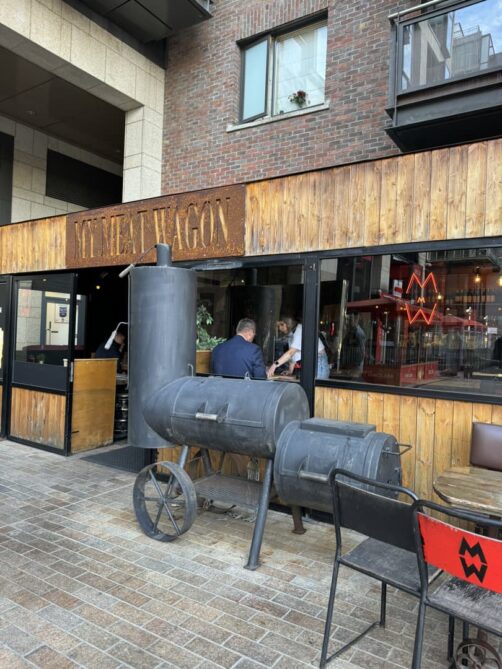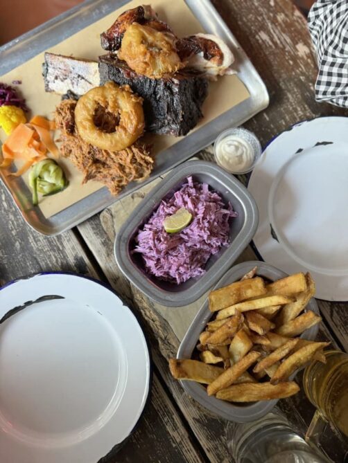 L’autre restaurant de BBQ que j’ai testé à Dublin, c’est My Meat Wagon, une adresse très populaire auprès des locaux, située dans le quartier de Smithfield, juste à côté de la Distillerie Old Jameson. On a pris un plateau de dégustation qui permet de goûter à une belle sélection de leurs viandes. C’était ultra copieux mais je garde quand même une petite préférence pour le Bison Bar, purement pour la cuisson de la viande.