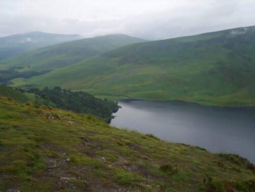 - Une visite combinée très populaire est celle qui vous fera découvrir le Wicklow Mountains National Park (connu pour ses beaux paysages et en particulier son « Guinness Lake », en photo ci-dessous) et le monastère médiéval de Glendalough (un endroit avec une aura particulière, malheureusement ma visite date et je n’ai pas de bonnes photos…). L’excursion que nous avions faite à l’époque était similaire à celle-ci – qui passe aussi par la ville médiévale de Kilkenny.