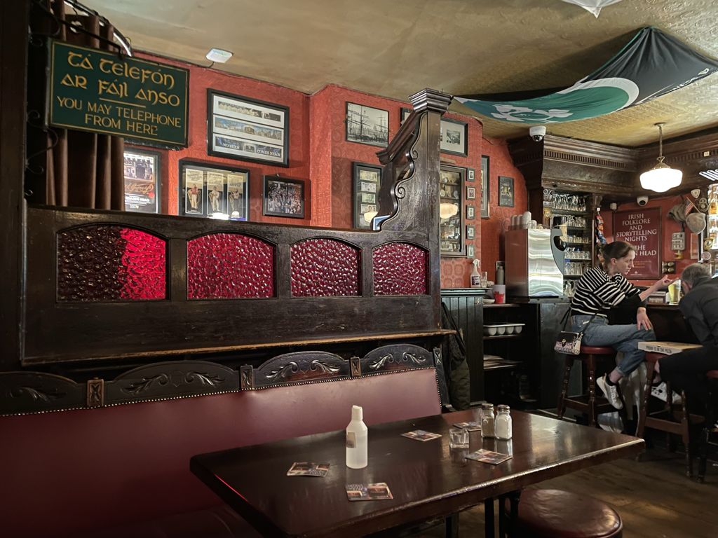 Côté bouffe, on y mange de la cuisine de pub standard, notamment des « Guinness stews » et des fish & chips (pas incroyables, mais bons).