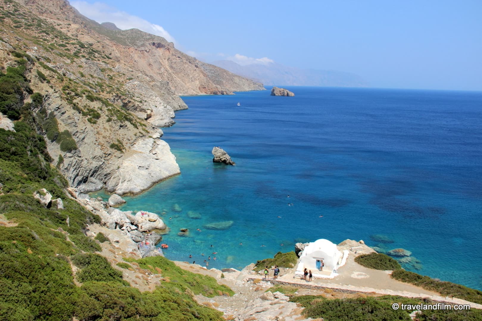Je vous conseille de ne pas manquer le monastère de la Panaghia Chozoviotissa, un monastère construit dans la roche qui date du 11ème siècle. On peut se baigner sur la plage d’Agia Ana au pieds du monastère avec la jolie petite église blanche. Amorgos est particulière pour la profondeur de son littoral et donc la mer d’un bleu profond, c’est pour cela qu’elle a été choisie pour le film Le Grand Bleu. Le village de Chora vaut aussi le détour. Et l’épave du Grand Bleu se trouve dans le Sud de l’île. L’île est aussi un bel endroit pour faire de la randonnée et profiter de la plage. Pour plus d’informations, allez voir mon article consacré à Amorgos, l’île du Grand Bleu.