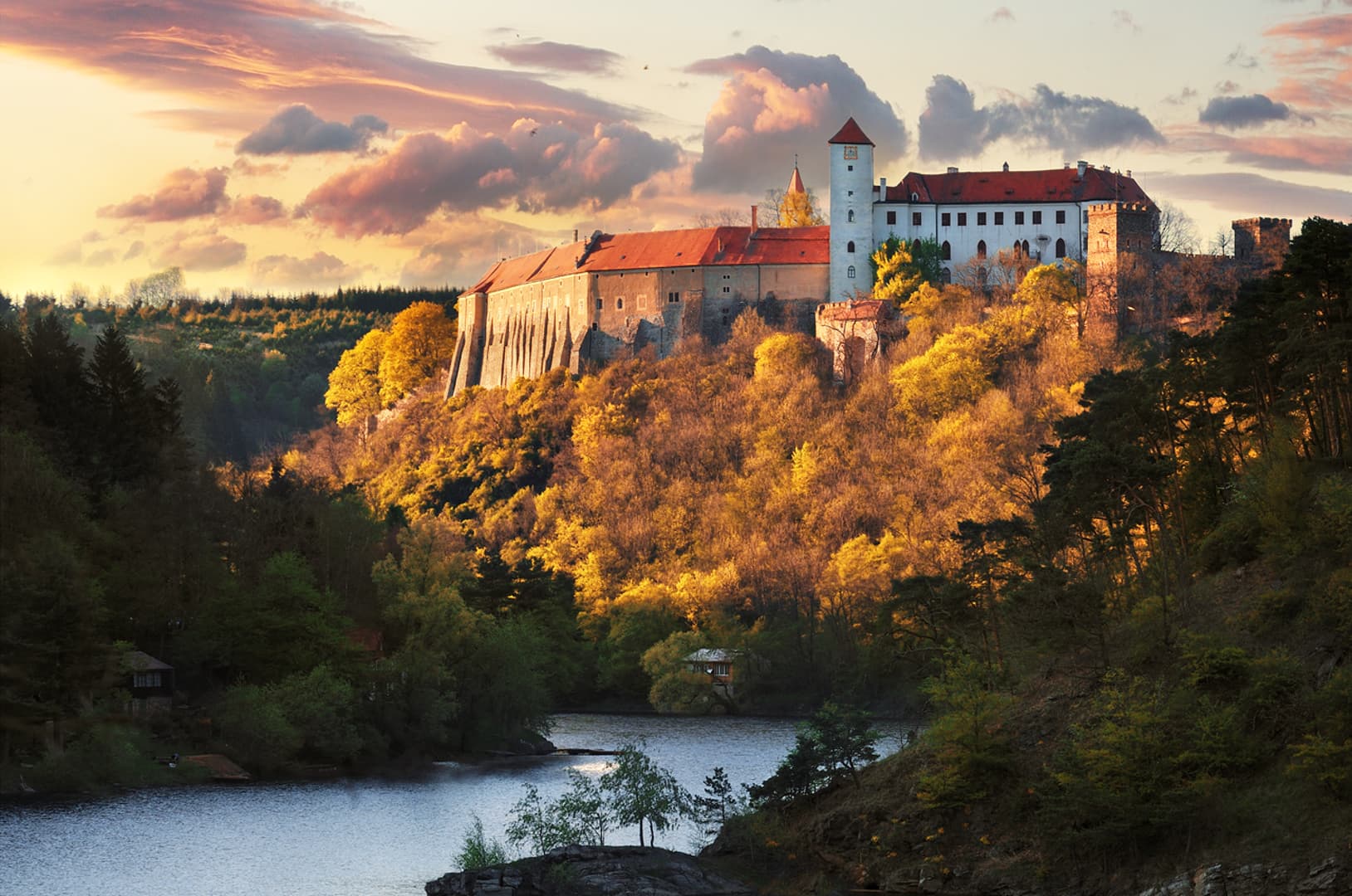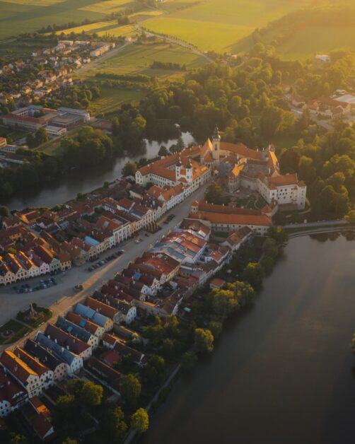 À seulement 40 minutes, se trouve un autre site UNESCO : la ville de Telč. Au XIVe siècle, le centre-ville de Telč a été rénové et s’est doté de murs en pierre, d’une place de marché triangulaire entourée de maisons bourgeoises Renaissance et baroques reliées par une arcade continue et d’un château Renaissance. La ville fut encore fortifiée par un réseau d’étangs artificiels.