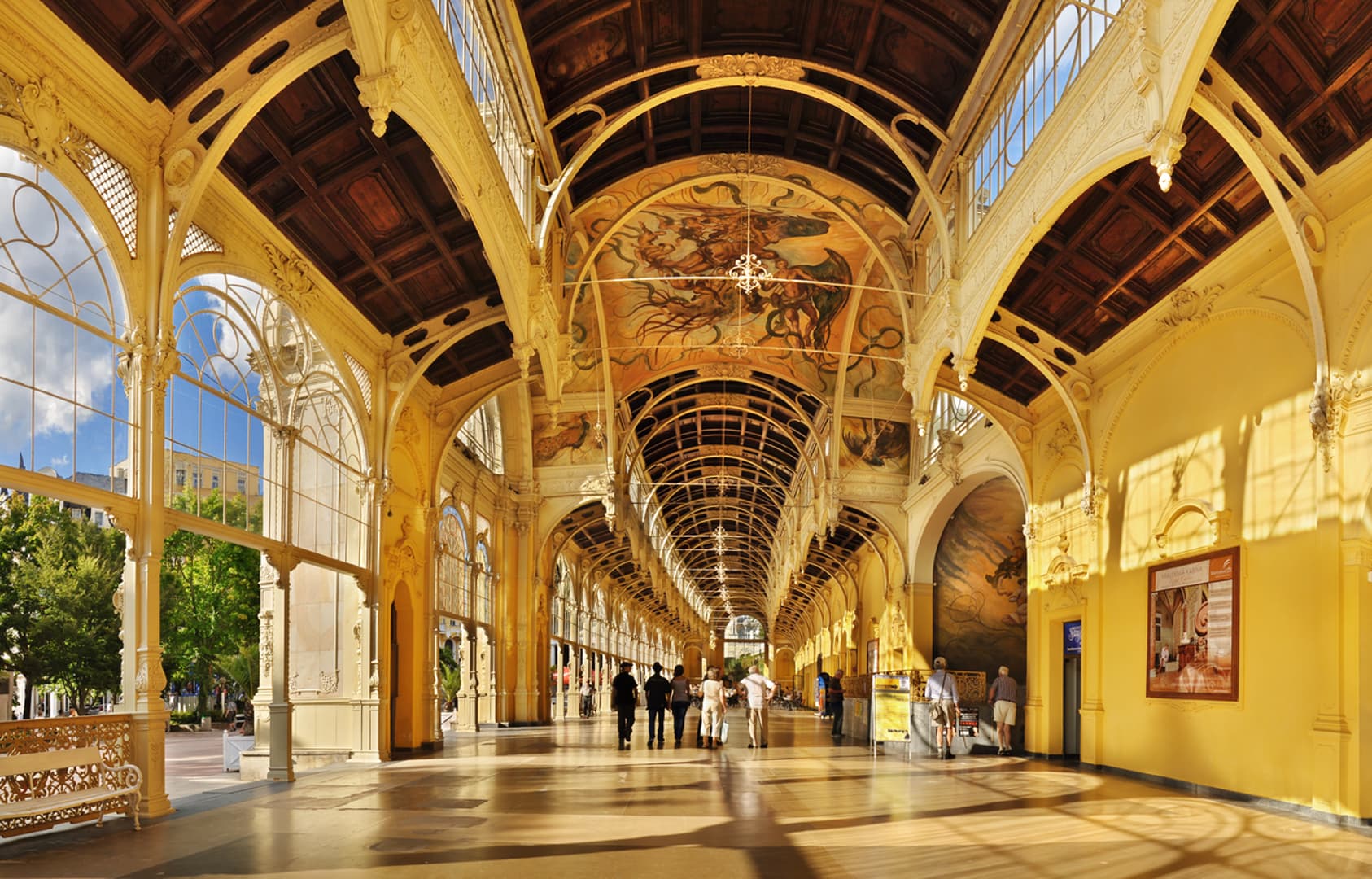 La beauté de l’architecture et la tradition thermale séculaire – dans laquelle l’eau des sources curatives joue un rôle important – font que ces villes valent absolument la peine d’être visitées. À Karlovy Vary, il y a cinq magnifiques colonnades avec 12 sources où l’eau thermale a une température de 40-73 ˚C. Vous verrez des gens boire l’eau curative à l’aide d’une cruche spéciale. À Mariánské Lázně et Františkovy Lázně, on trouve également des colonnades photogéniques et des hôtels thermaux ornés. Nombre de ces hôtels proposent des soins de bien-être en plus des traitements médicaux.