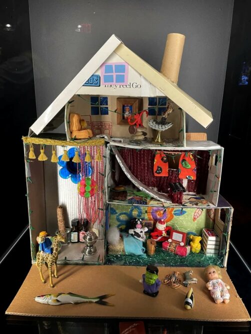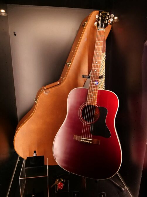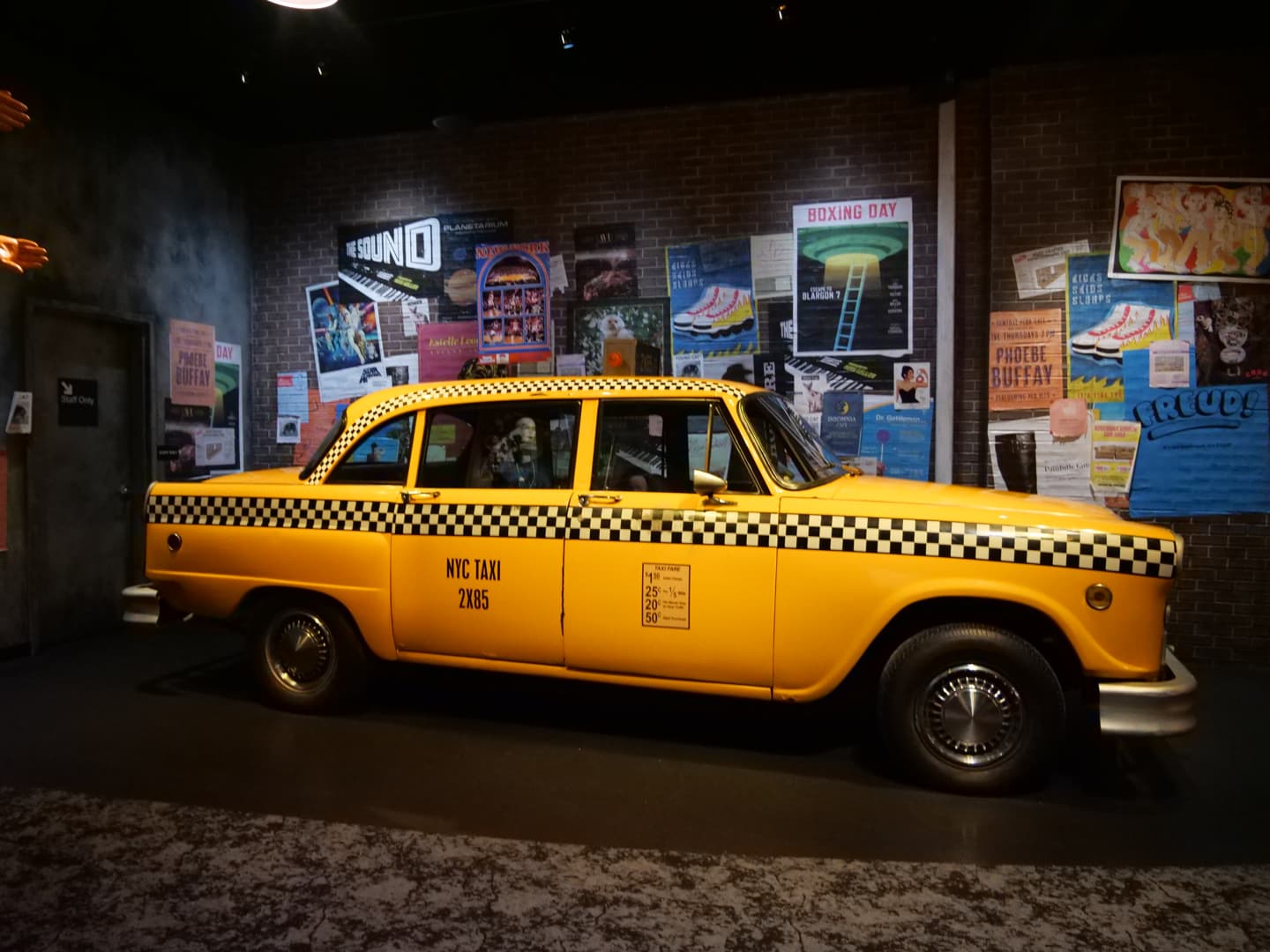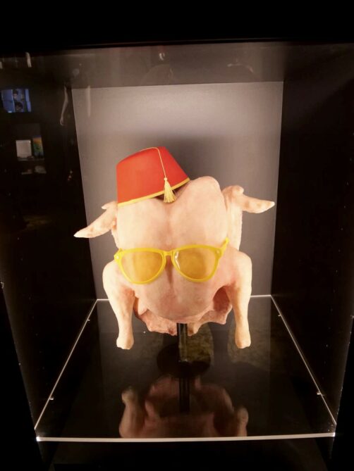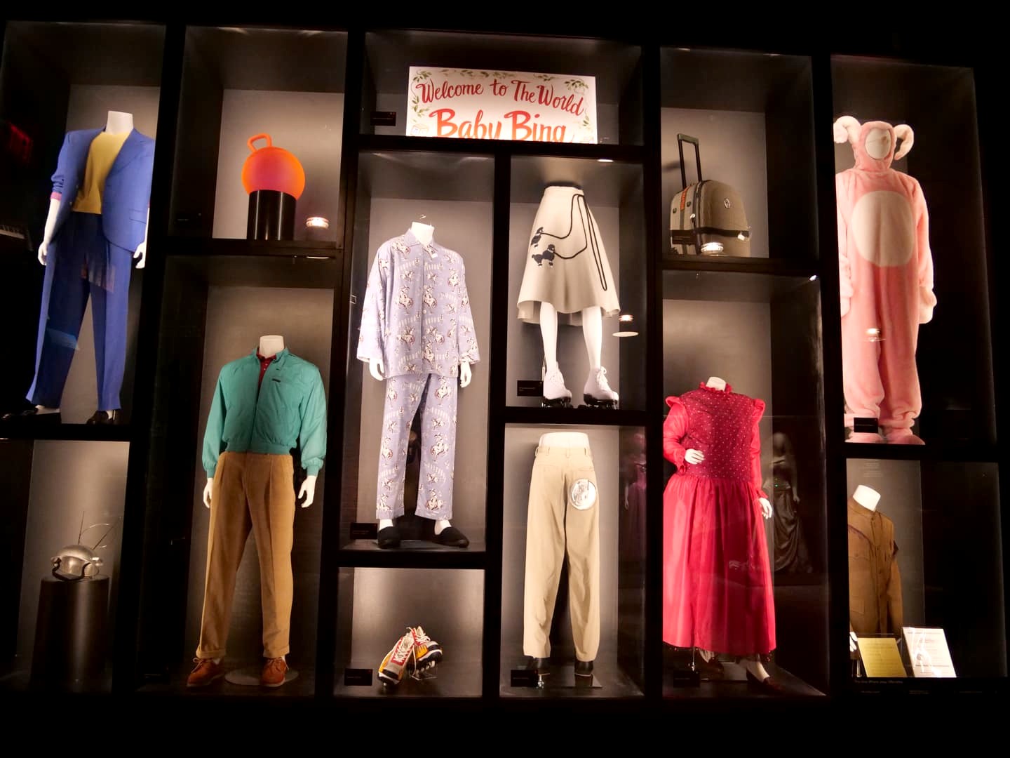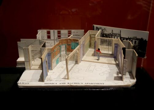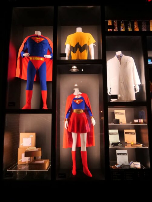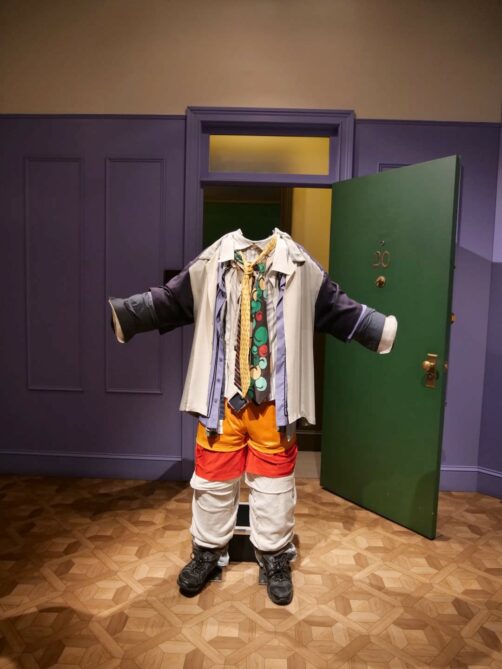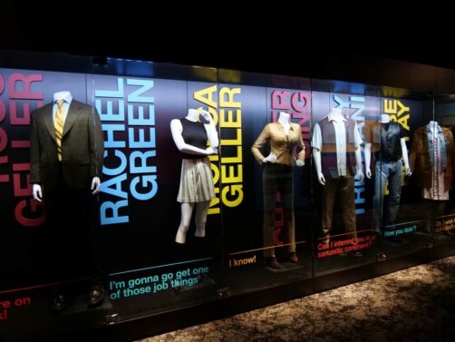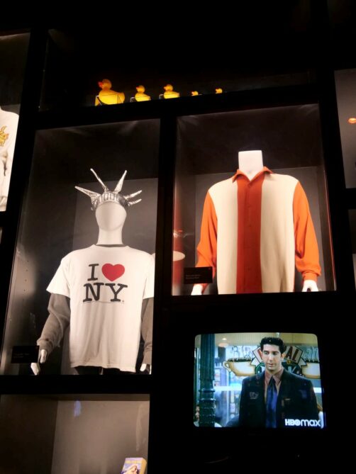 Après une première partie plus dédiée aux « coulisses » de la série et aux personnes qui l’ont créée, on commence à alterner entre décors et props originaux. J’ai beaucoup aimé la variété d’objets qu’on peut voir dans l’expo : ça va de la guitare de Phoebe au fameux pantalon en cuir de Ross, en passant par Gladys, ou encore une multitude de costumes portés par les six amis.
