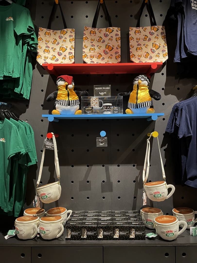 À la fin, vous trouverez (bien évidemment) une petite boutique avec des articles brandés Friends. Pour ceux qui ont déjà fait le Warner Bros. Studio Tour à Hollywood (voir mon article), le choix est par contre beaucoup moins grand. Mais on peut tout de même se procurer quelques trucs sympas, comme Huggsy (le pingouin en peluche de Joey), des mugs Central Perk, des sacs Friends,… Bref, attention à votre portefeuille tout de même !
