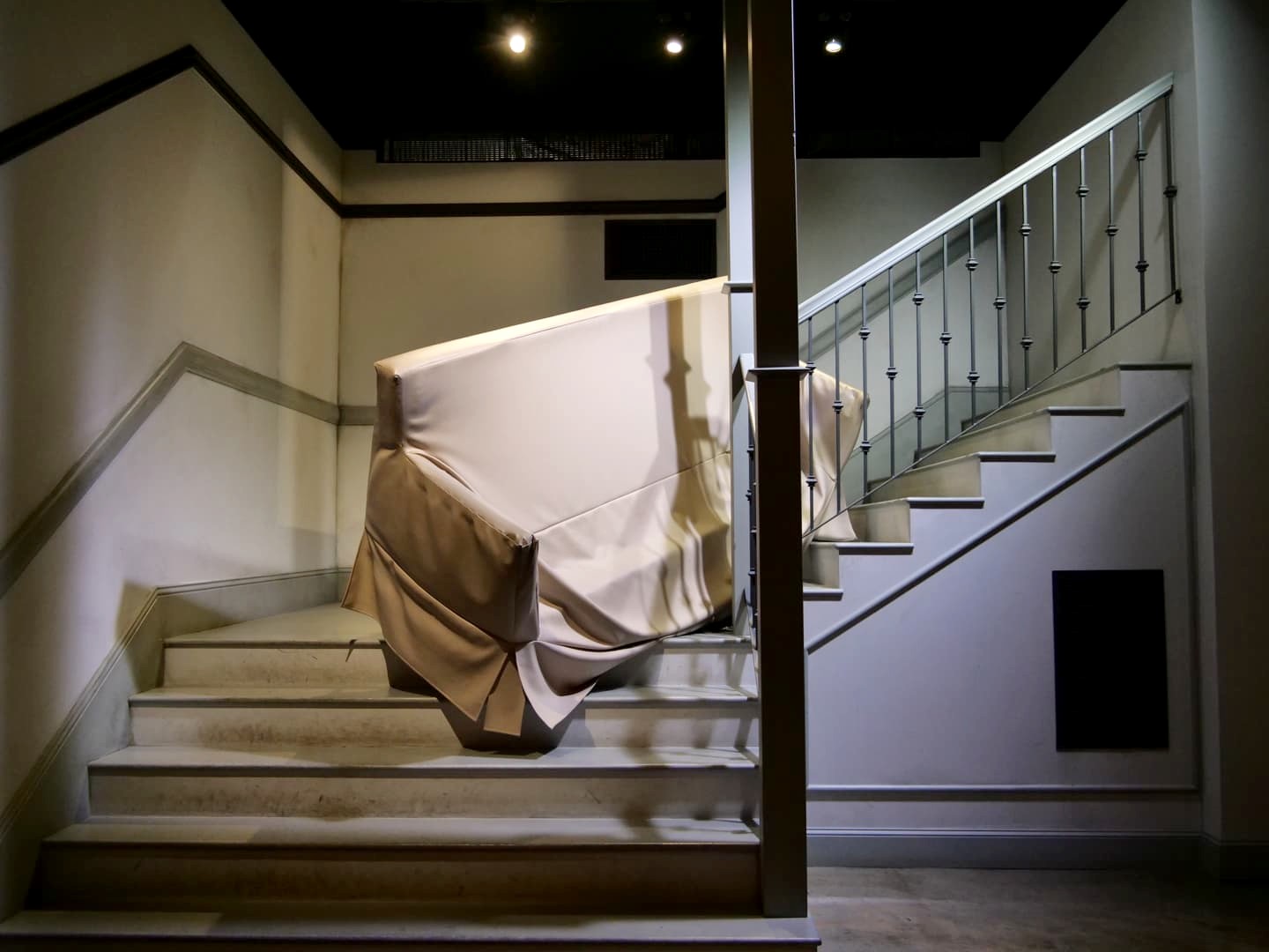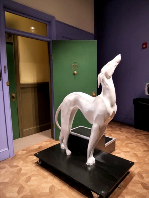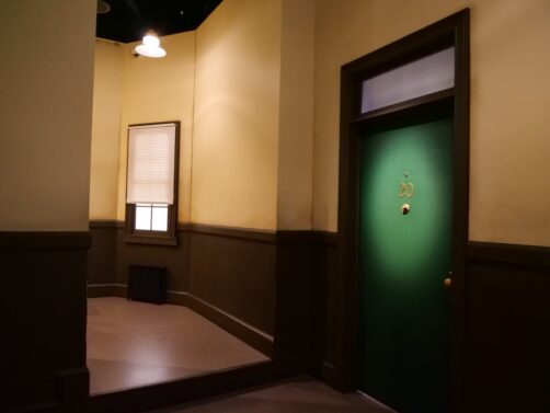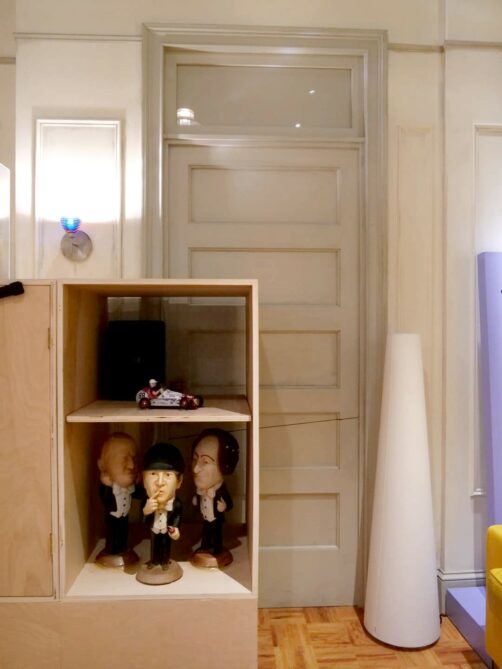 L’exposition commence par un petit film d’introduction, après lequel une porte s’ouvre sur le fameux fauteuil du générique, avec la fontaine à l’arrière, où vous avez votre première opportunité photo : il s’agit d’un des endroits où vous devez remettre votre QR code pour une photo payante. À New York, la personne présente laissait quand même un peu de temps après la « photo officielle » pour que les groupes puissent se prendre en photo entre eux à cet endroit (ce ne fut pas le cas à Bruxelles).
