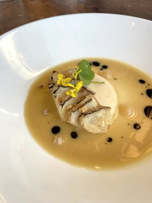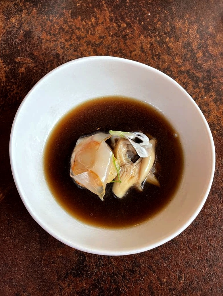 Ensuite, un petit plat de la mer joliment réalisé : Saint-Jacques, encornet de Dunkerque, dashi et champignons.