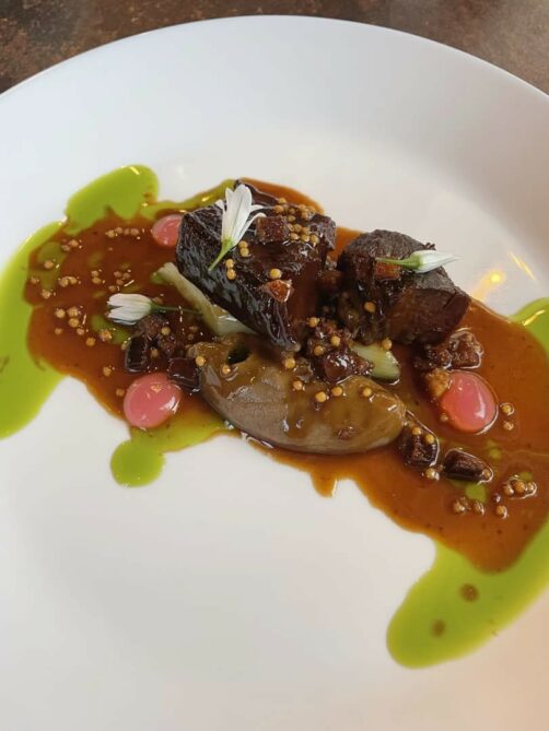 Le plat de résistance, le bœuf aux poireaux et topinambours, fondait en bouche mais le plat m’a dans son ensemble un peu moins emballée.