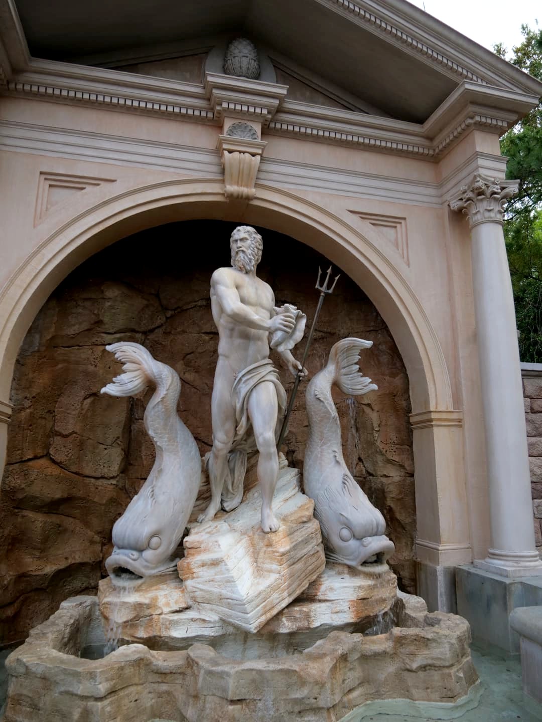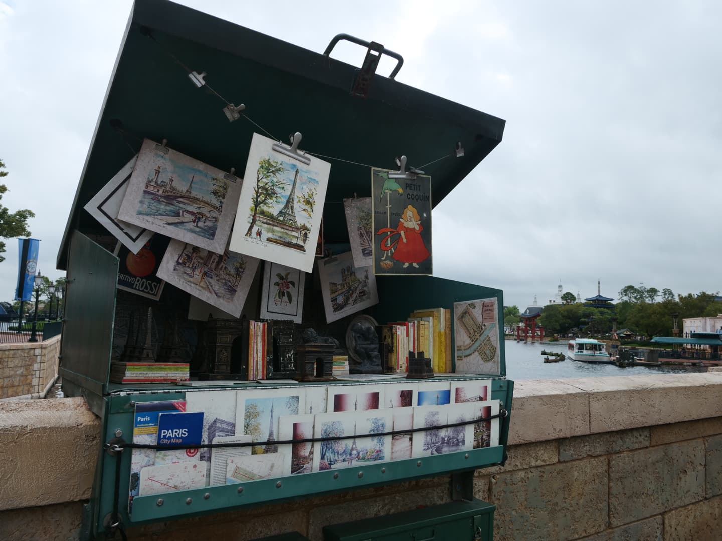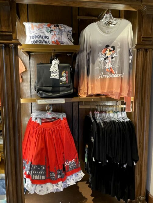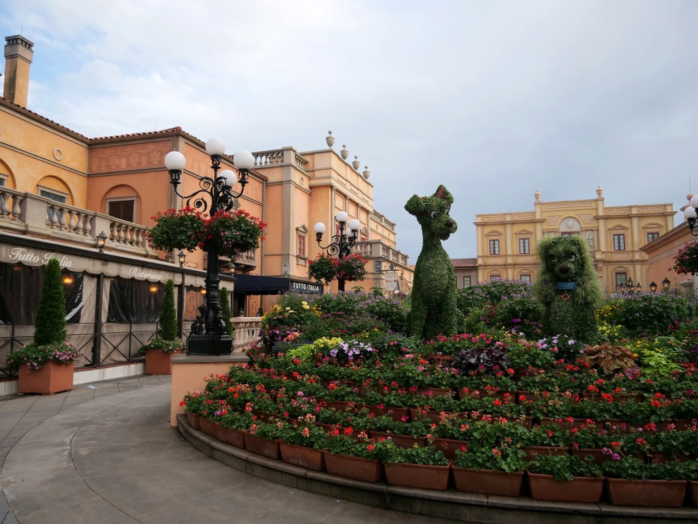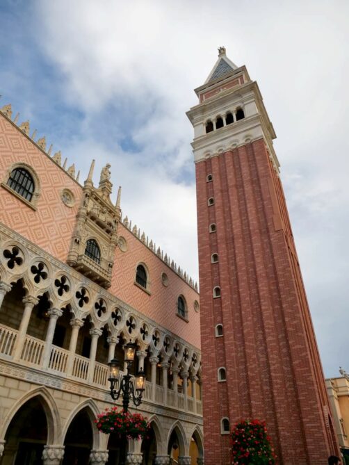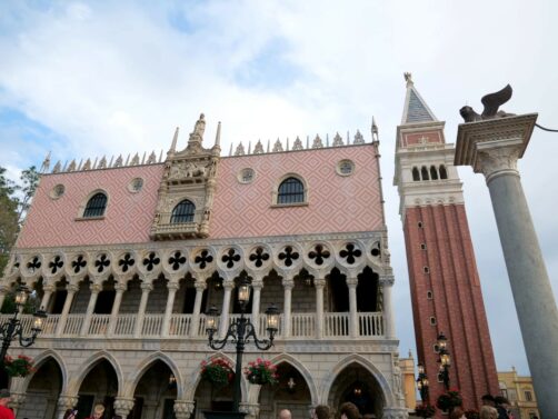 On passe à présent en Italie, dont le pavillon est un mix de plusieurs villes italiennes, principalement Venise (avec le Campanile de la Place St. Marc et le Palais des Doges), Rome (avec des éléments inspirés par la fontaine de Trévi et la Chapelle Sixtine) et Florence. On y trouve une pizzeria populaire, Via Napoli. J’ai beaucoup aimé les boutiques de ce pavillon, où on trouve pas mal de choses originales.