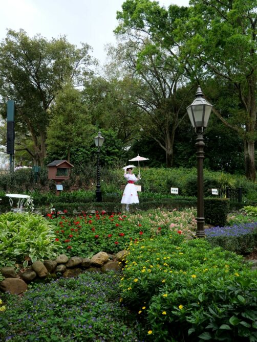 On arrive ensuite au pays de Winnie l’Ourson, Peter Pan, Mary Poppins… J’ai beaucoup aimé le pavillon du Royaume-Uni, pensé comme un village anglais très stéréotypé, avec un pub anglais (The Rose & Crown Pub and Dining Room), des jardins anglais (où se balade parfois Mary Poppins !), un magasin bien fourni pour les fans de culture British, et même des concerts de musique à certains moments de la journée. Cette zone devrait bientôt accueillir une nouvelle attraction autour de l’univers de Mary Poppins (apparemment, une attraction de type « tasses tournantes »).