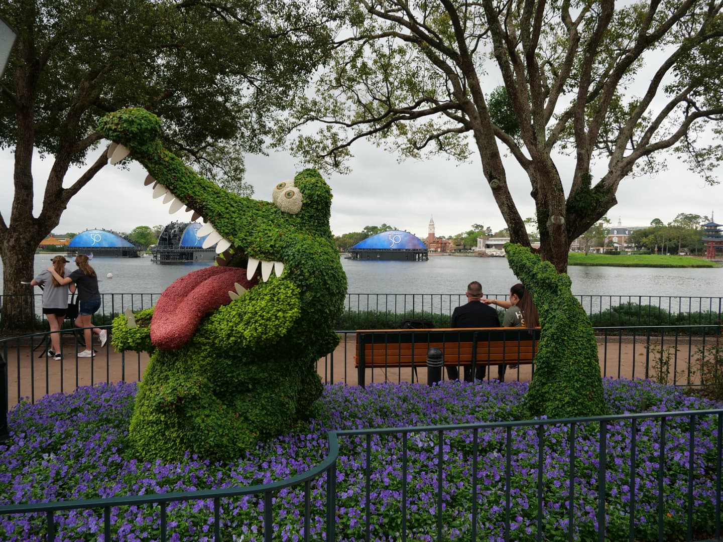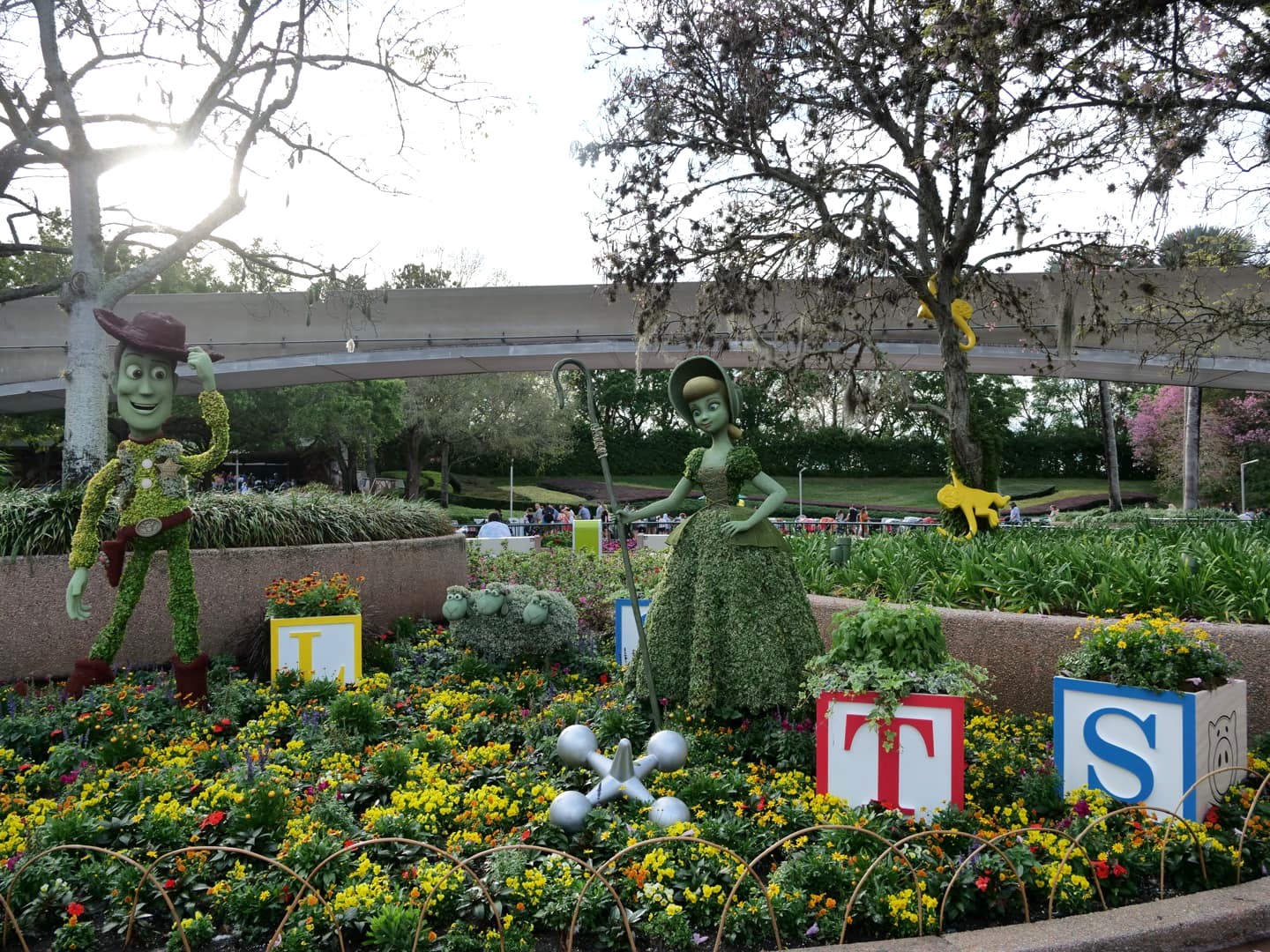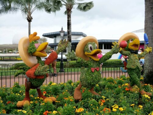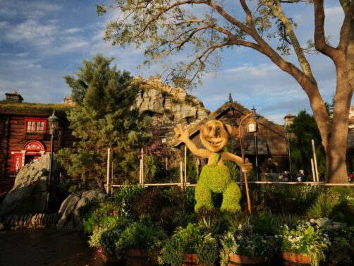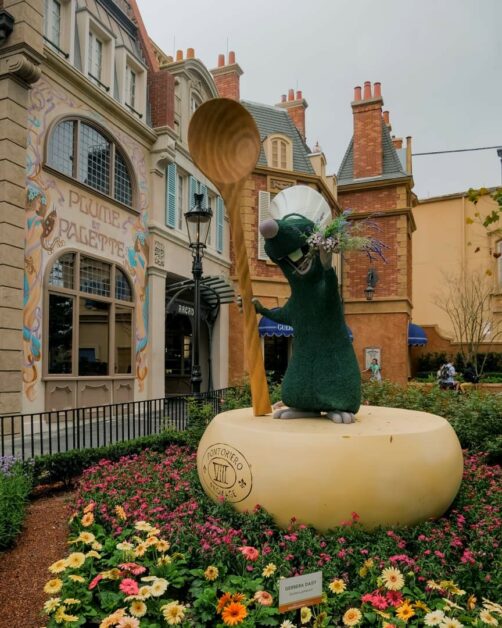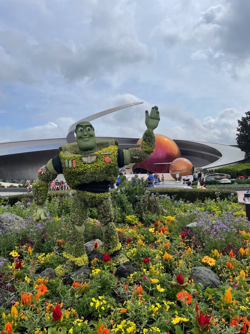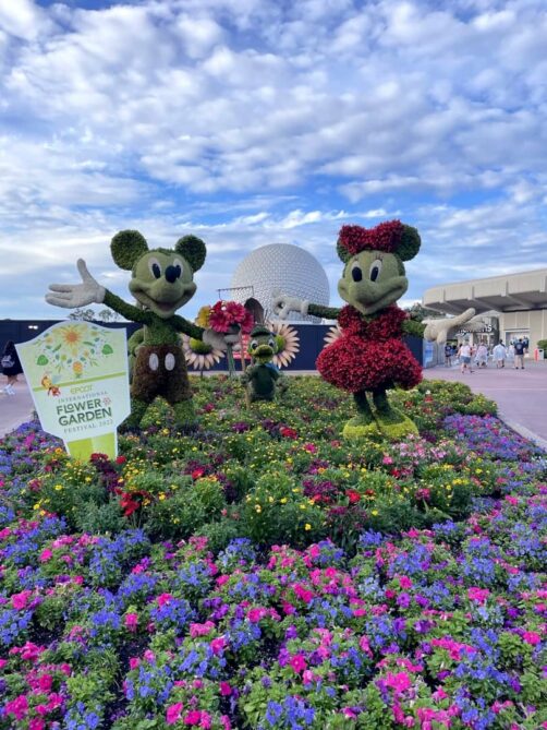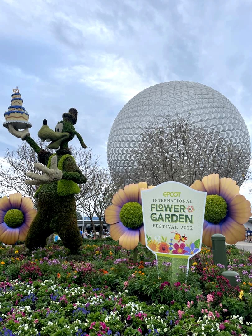 Par chance, notre visite à EPCOT correspondait avec le EPCOT International Flower & Garden Festival, qui a lieu chaque année au printemps. Pendant cette période, le parc est rempli de fleurs et sculptures végétales de personnages Disney. Ca rend les décors du parc encore plus beaux ! Et bonne nouvelle : en 2023, à l’occasion des 100 ans de Disney, cet événement sera prolongé jusqu’en juillet !