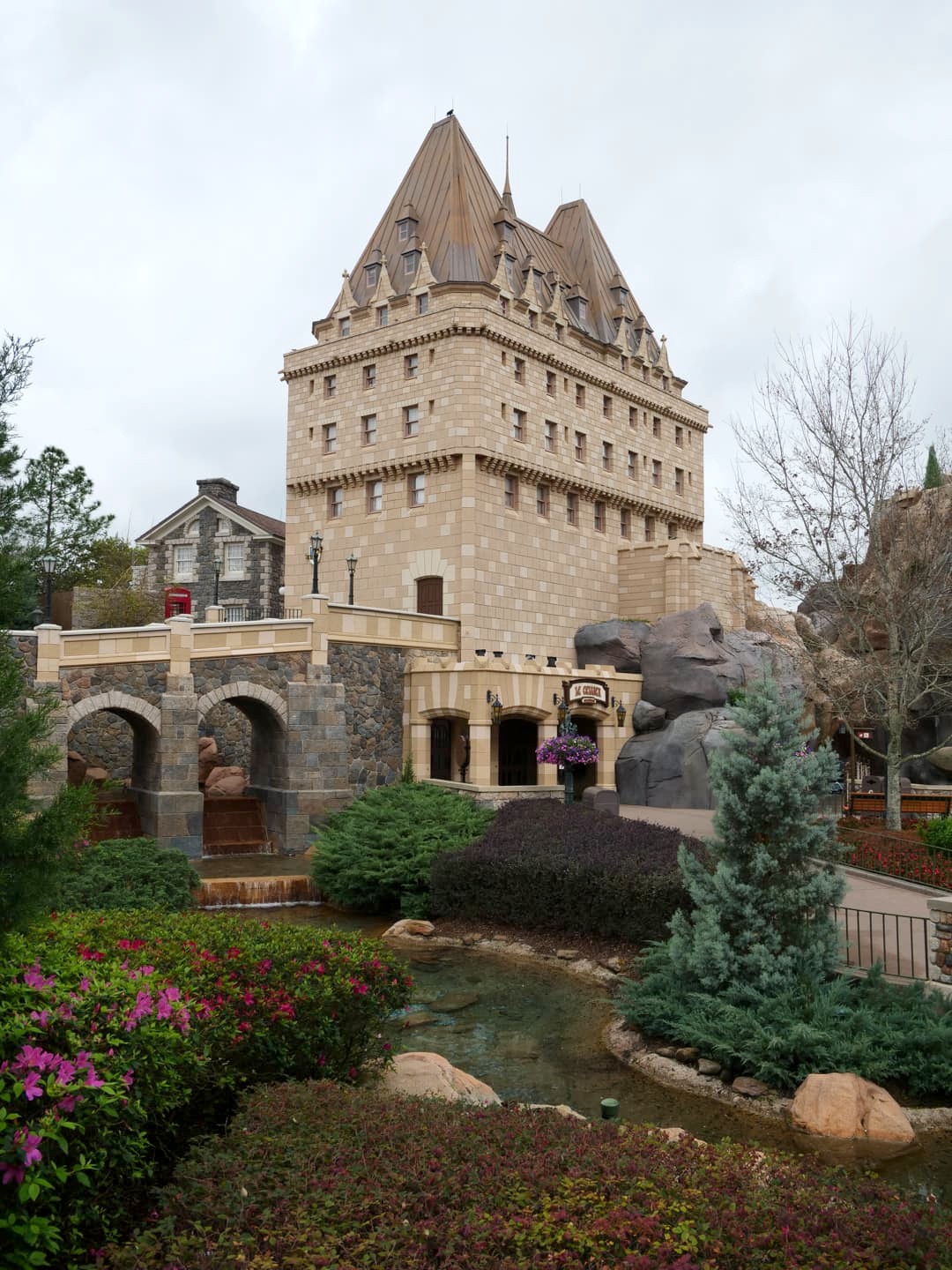 On commence par le pavillon du Canada, centré autour de l' »Hôtel du Canada », inspiré par le Fairmont Château Laurier d’Ottawa. Tout autour : des jardins, une chute d’eau, des mâts totémiques… et un restaurant de viande, Le Cellier Steakhouse. On peut aussi y voir un petit film très promotionnel sur le Canada, dans une salle avec un écran à 360 degrés (Canada: Far and Wide) – à voir uniquement si vous avez le temps (ou envie d’aller bientôt au Canada !).
