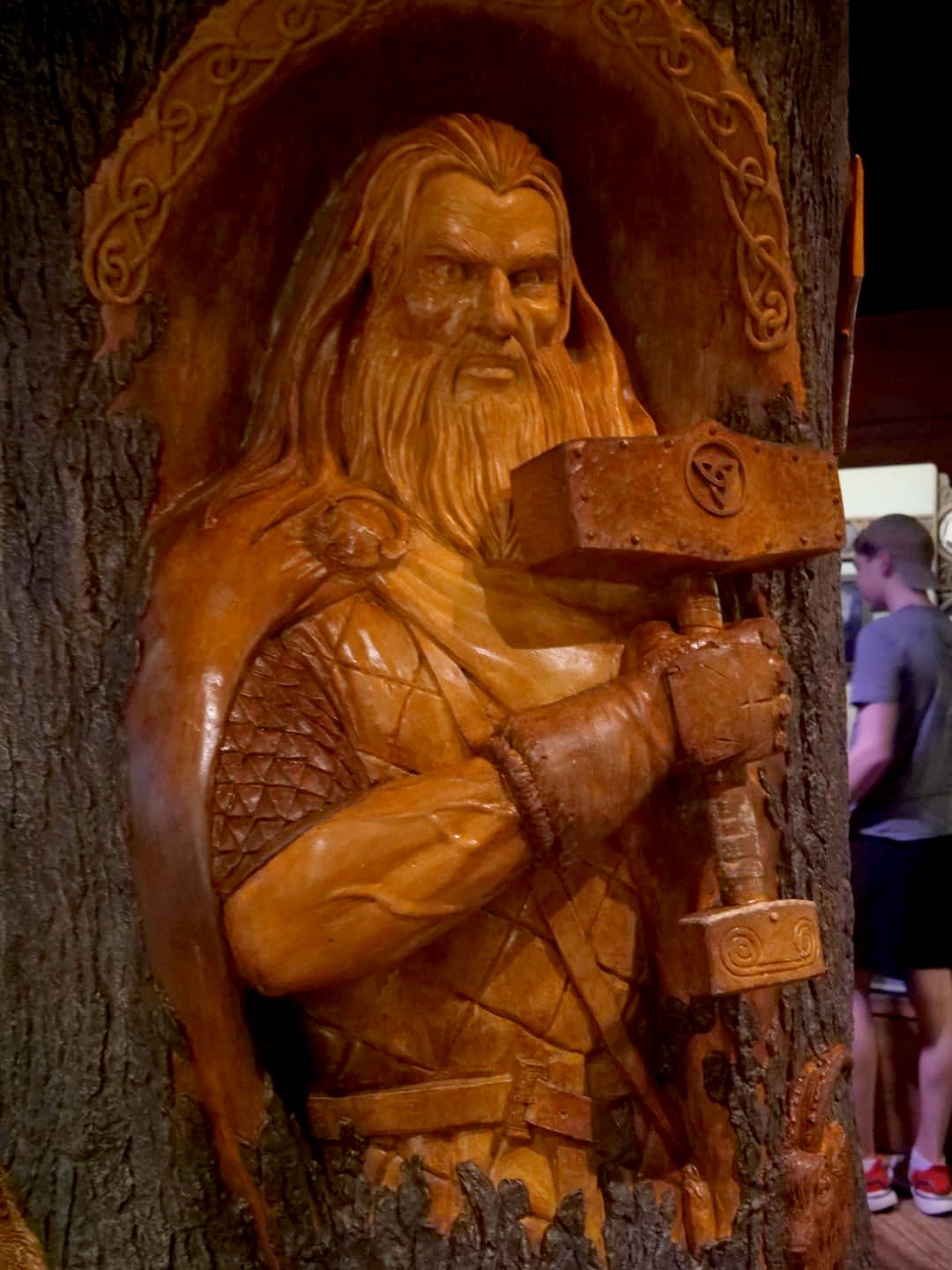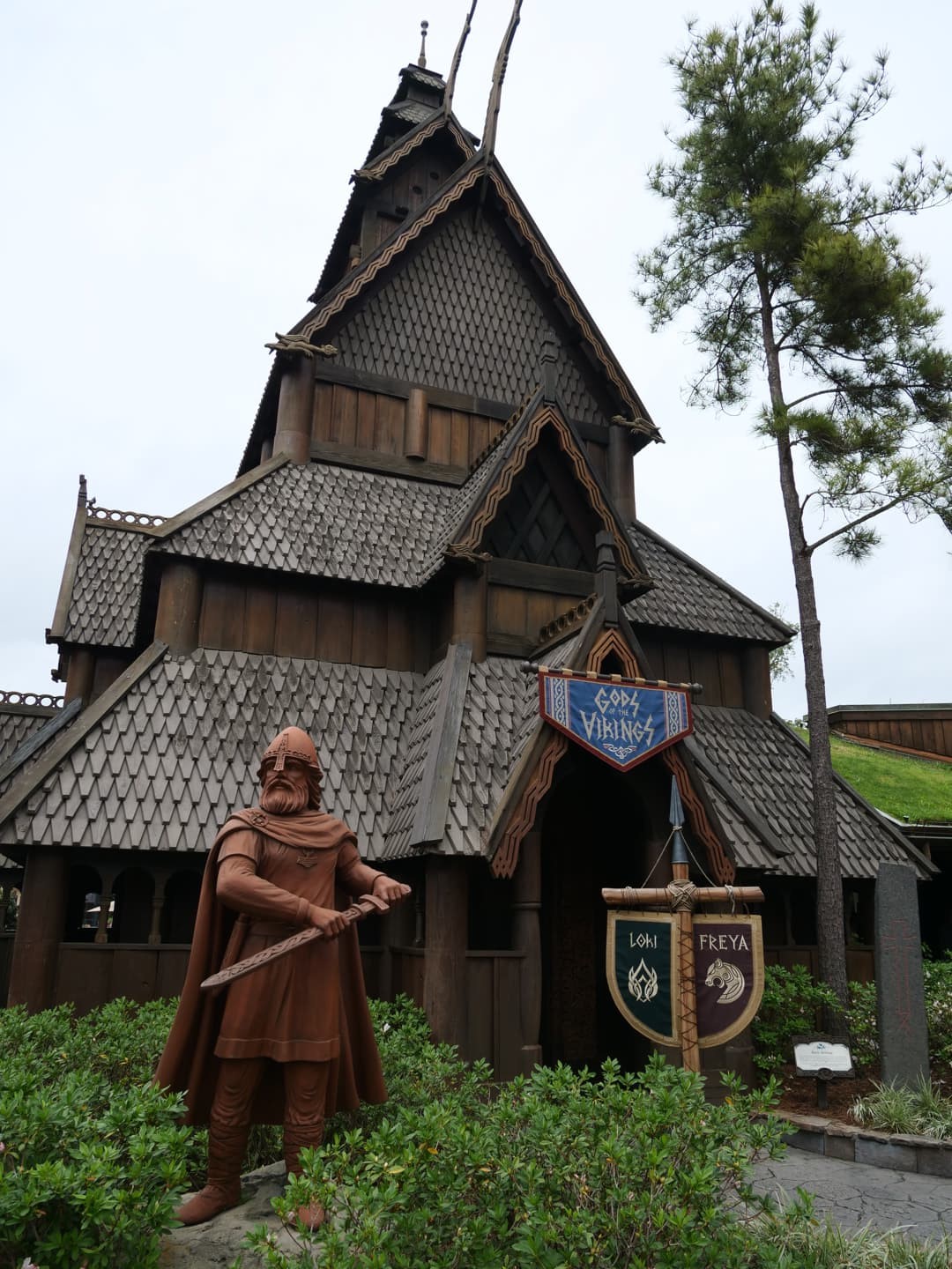 Après quelques zones assez vides d’intérêt au niveau des attractions, on arrive en Norvège, où se côtoient Thor et la Reine des Neiges. Le pavillon est pensé comme un village norvégien, avec une église en bois accueillant une exposition sur la mythologie nordique.